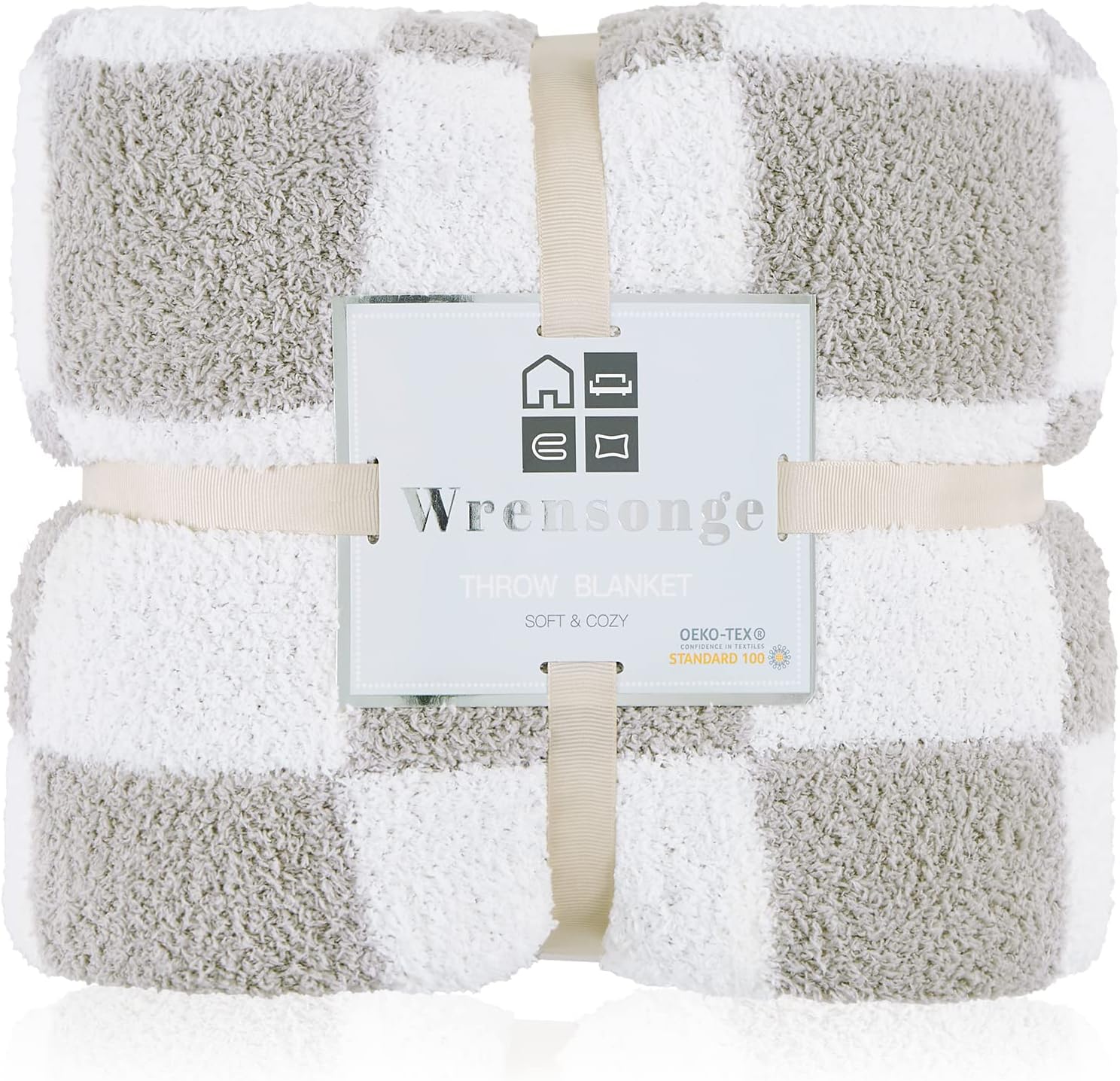 WRENSONGE Checkered Throw Blanket, Light Grey Soft Cozy Fluffy Warm Hand Made Throw Blankets for Couch, Sofa, Chair, Bed, Camping, Picnic, Travel Lightweight Bed Blanket - 60 * 80