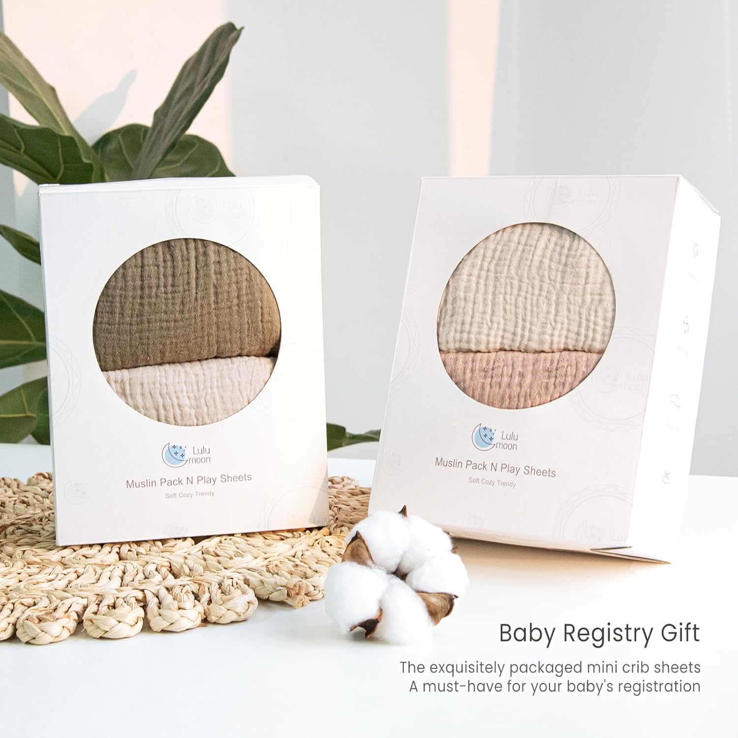 lulumoon Mini Crib Sheets Muslin: Soft Cotton Fitted Mini Crib Mattress Sheets for Boys and Girls 2Pack