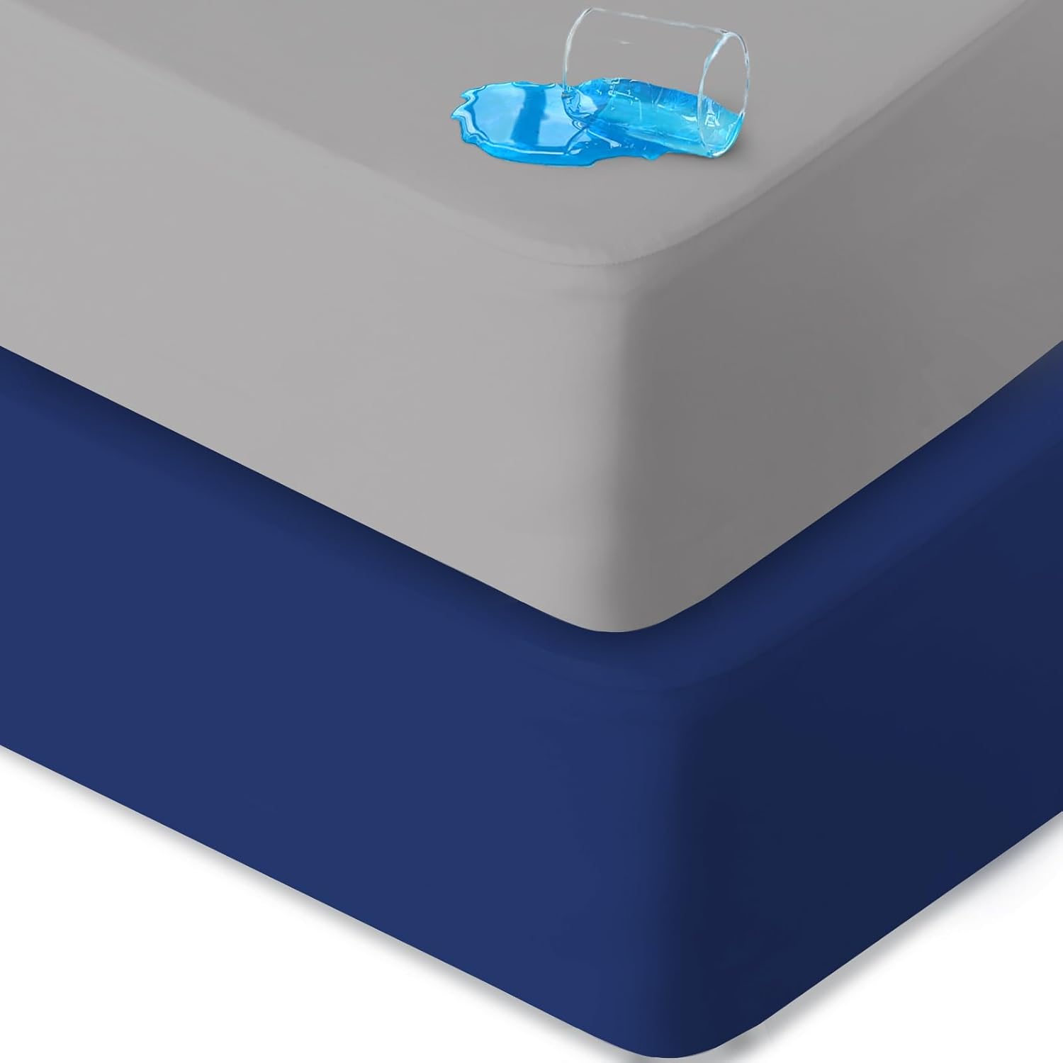 Biloban Mini Crib Sheets Fitted Waterproof 38'' x 24'', 2 Pack Mattress Protector Cover Fits for Dream on Me/Newton Mini Crib Mattress, Portable Sheet for Boys & Girl