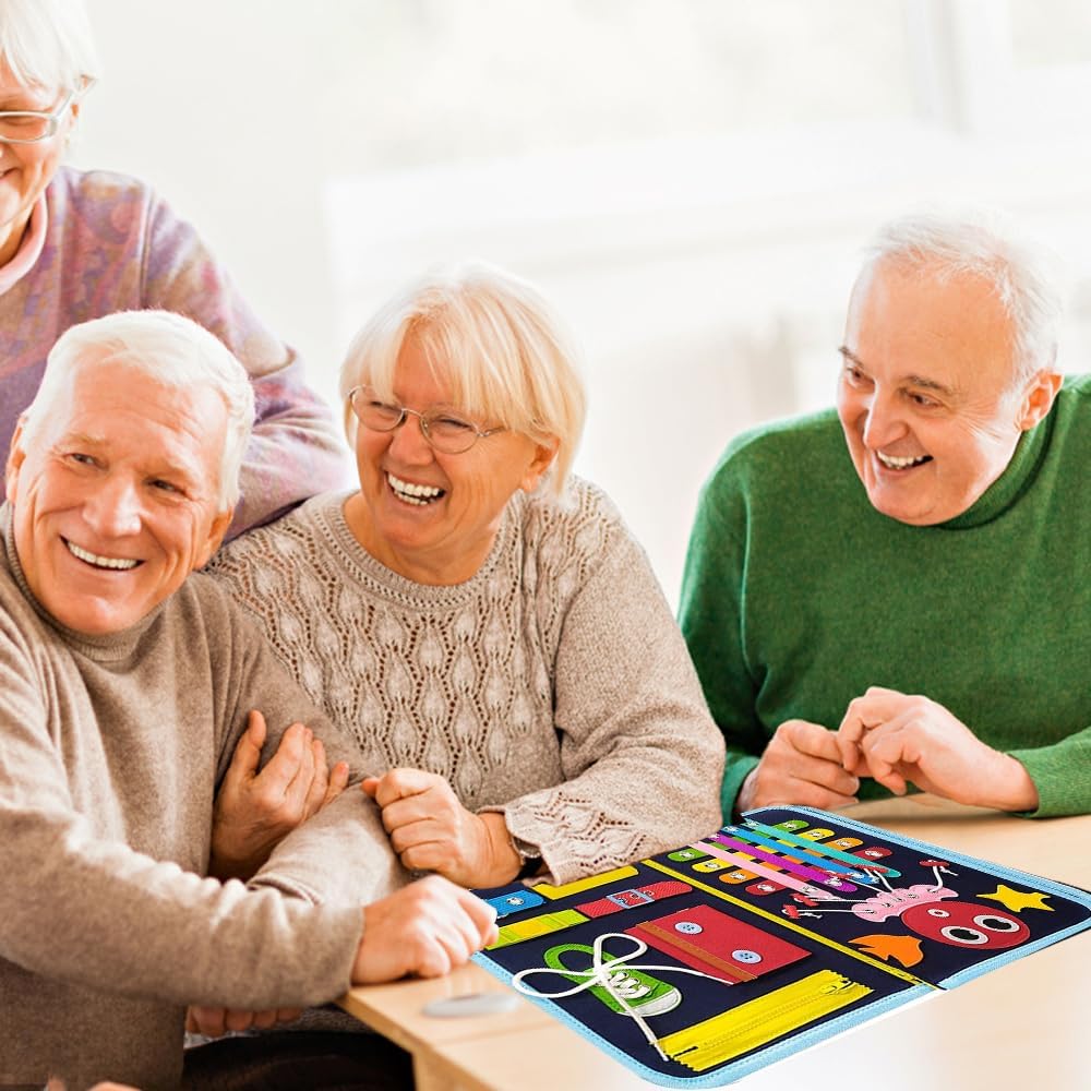 - GREAT FOR OWNING OR GIFTING: This dementia and autism busy blanket will be a very nice present for seniors people of Dementia, Alzheimer's disease, Hyperactivity, Autism, and Memory loss issues! Also a good toy for children and accompanying fidget blanket for nursing home. Convenient and light to carry for road trip and airplane