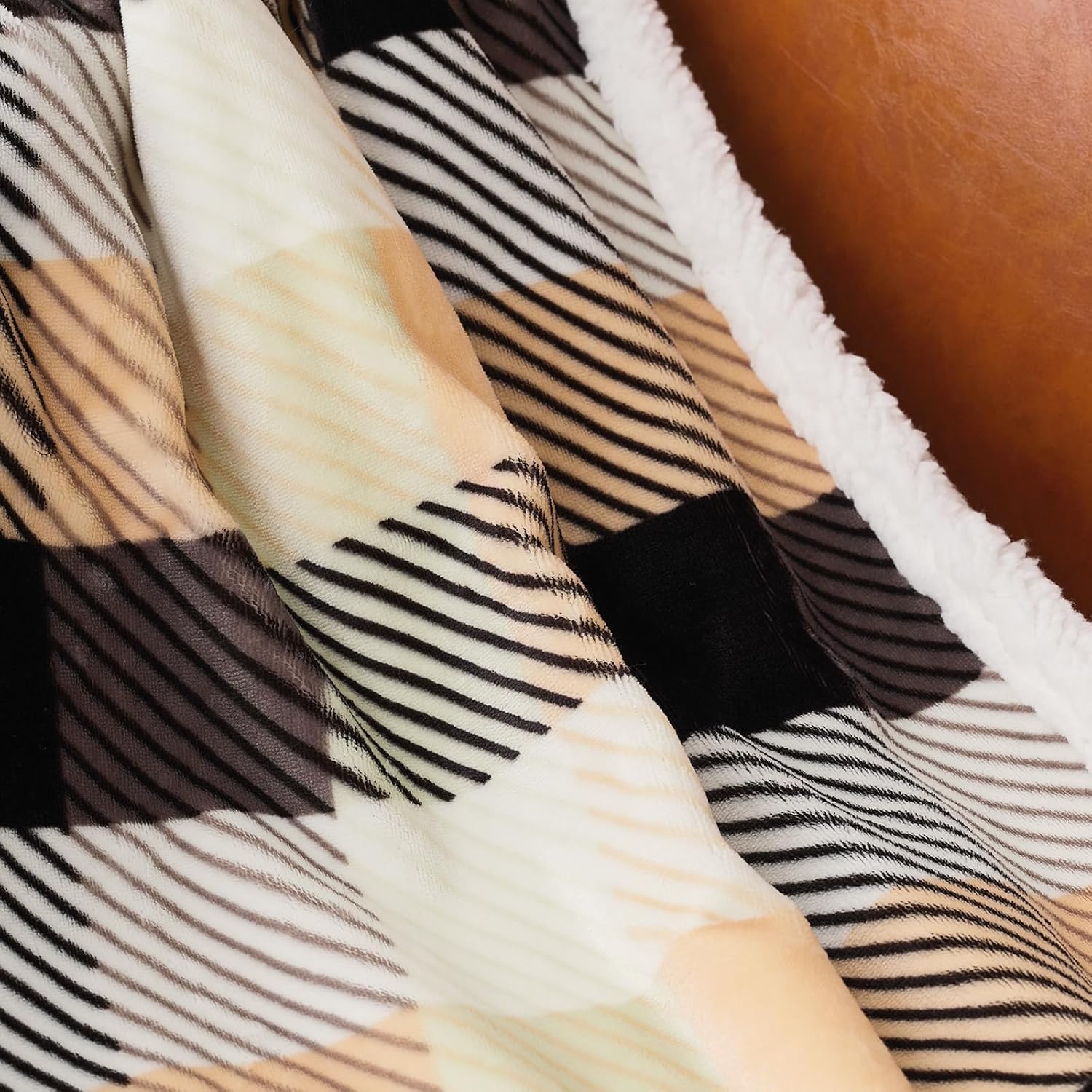 Touchat Sherpa Plaid Twin Blanket 60" X 70", Fuzzy Fluffy Soft Cozy Throw Blanket, Twin Size Plush Fleece Flannel Plush Microfiber Blanket for Couch Bed Sofa (Brown Color)