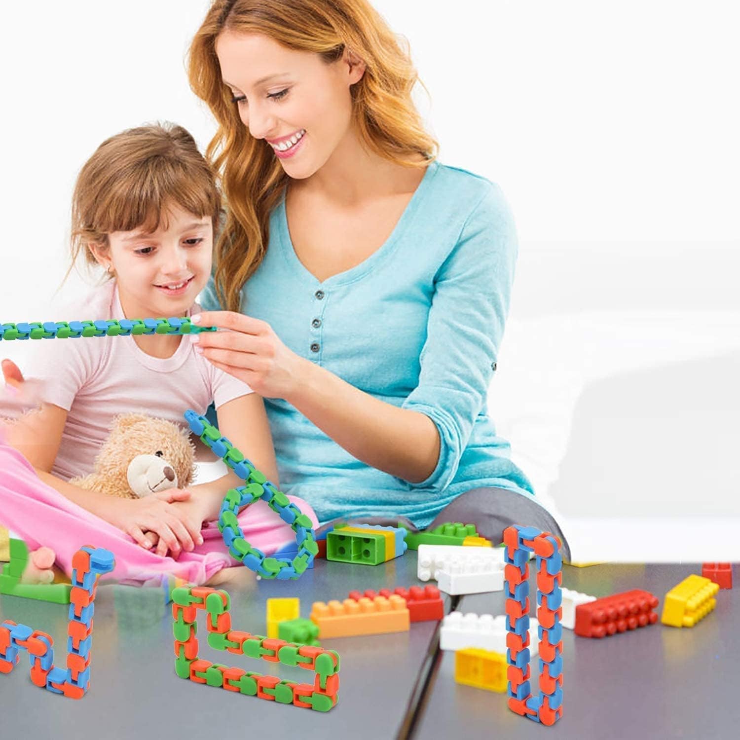 - 【Snap and click】: each of the 24 links can pivot and lock into 5 positions, you can create any shapes you want, such as letters, numbers, symbols, etc..bring challenges and fun to your fingers and brain