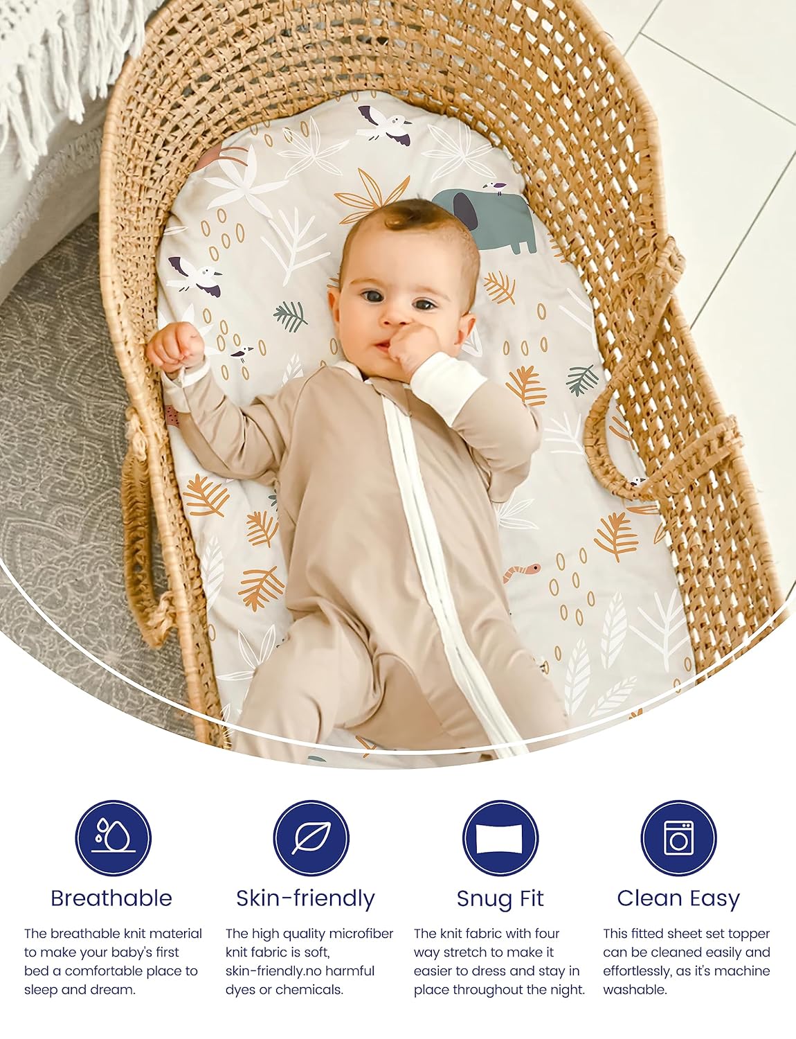 TotAha Premium Stretchy Jungle Animal Changing Pad Covers, Hypoallergenic Changing Table Cover, Silky Comfort, Buttery Soft, Calming Effect, All-Season Jersey-Knit 5'' Deep Pocket