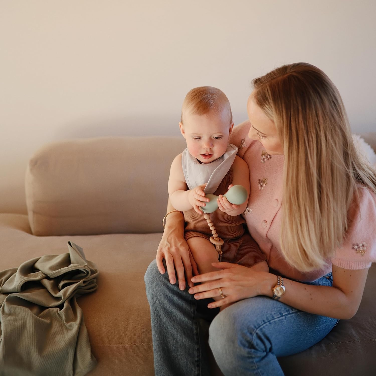 - Soft Sounds & Silicone: With an exterior made from 100% food grade silicone, parents appreciate the safe materials, modern design and soft sounds. All mushie Silicone Baby Rattle Toys are also Prop 65 and CPSIA Complaint.