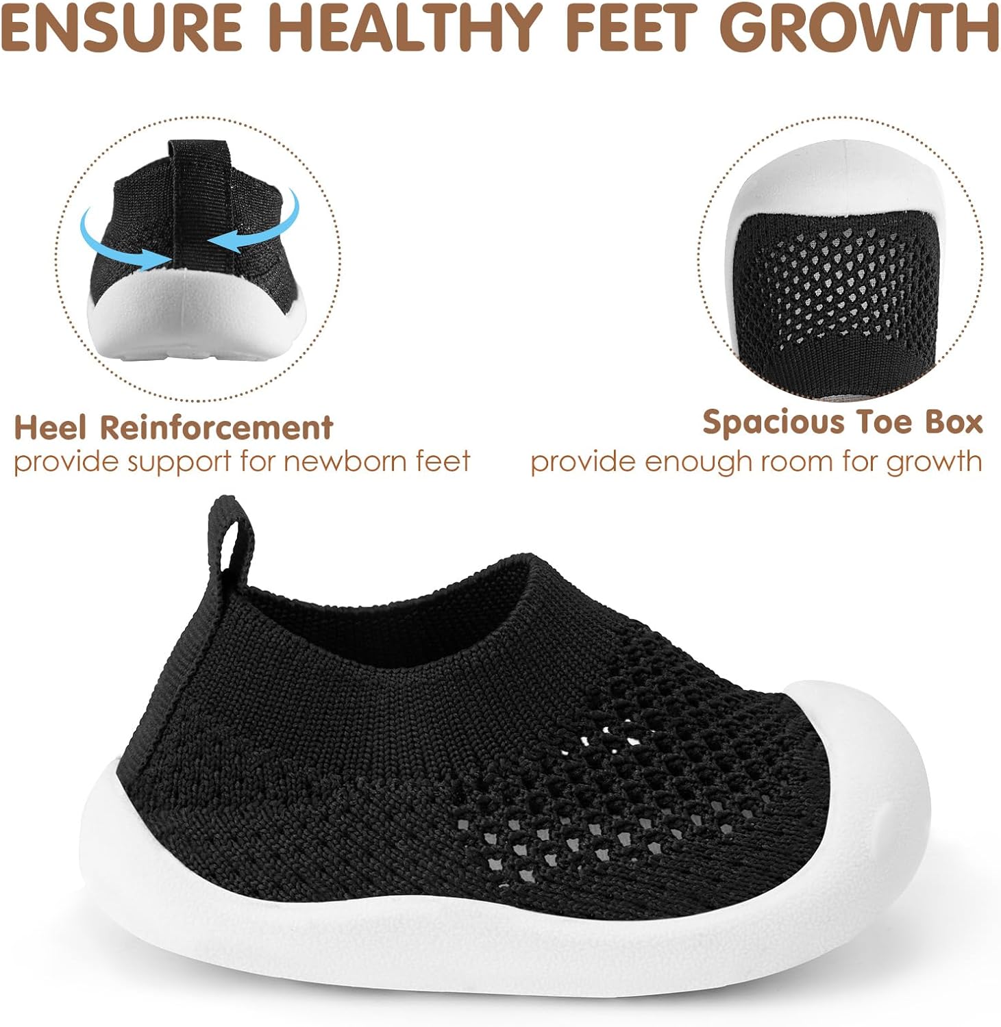 - Designed for Kid's Healthy Growth: With a non-slip and flexible outsole, our baby shoes provide superior grip for every step. The Reinforced Heel offers better ankle support. The soft and flexible shoe sole makes kids walk comfortably and steadily.