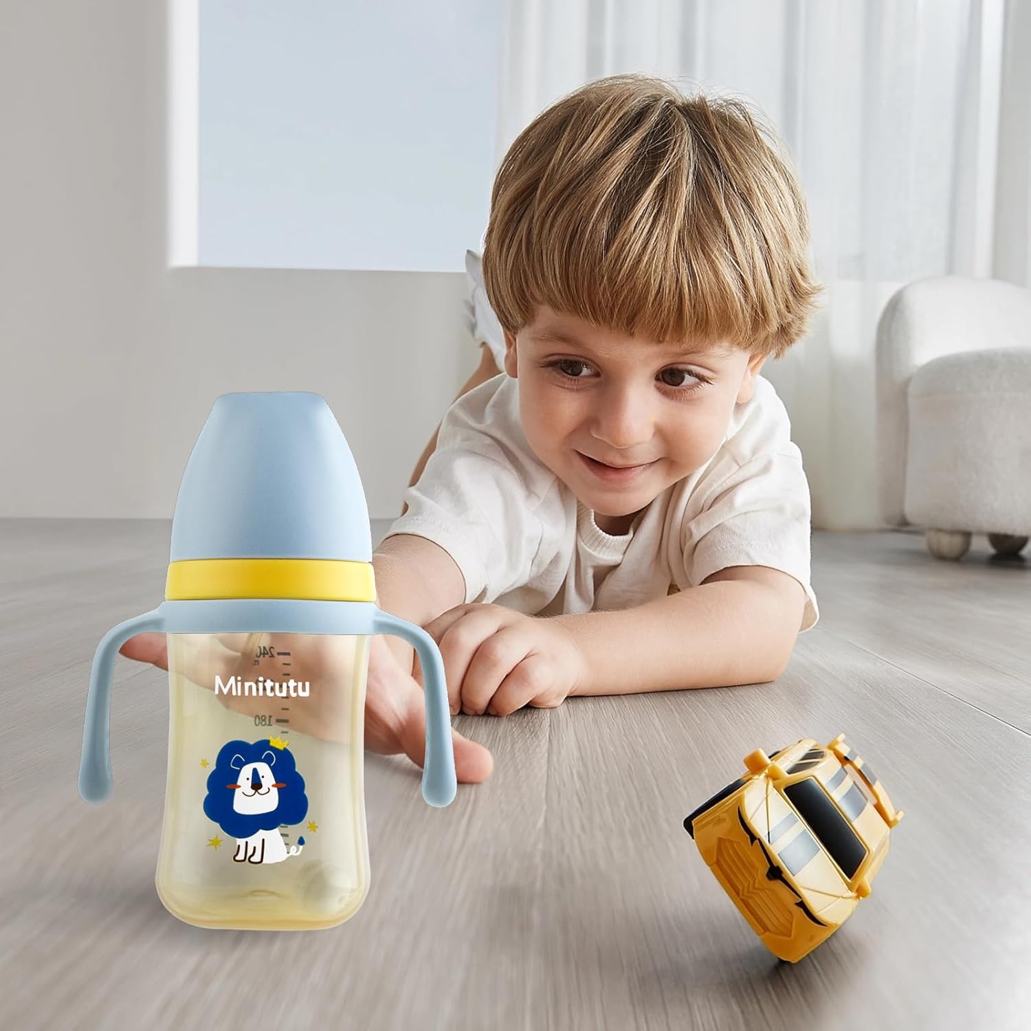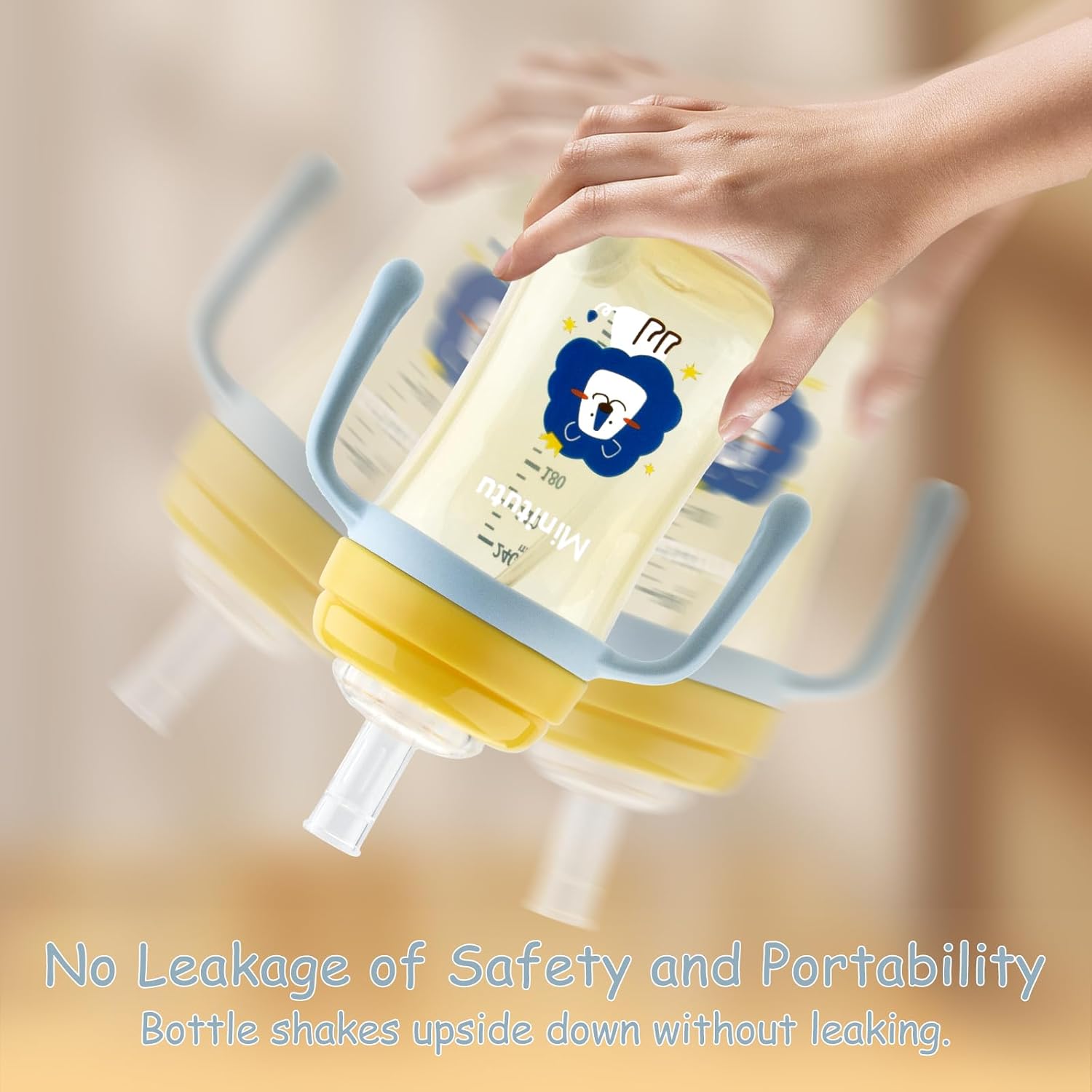 - 【Easy to Clean & Easy to Grip】Many parts are detachable and interchangeable , and they're all quite easy to clean and mold-free. Also the cups with handles or grippy material that’s easy for little hands to pick up. The cup has a soft silicone spout that has a special vent to prevent swallowing too much air. If the seal ring does not fit, try using 2 cotton swabs to assist with the fitting.