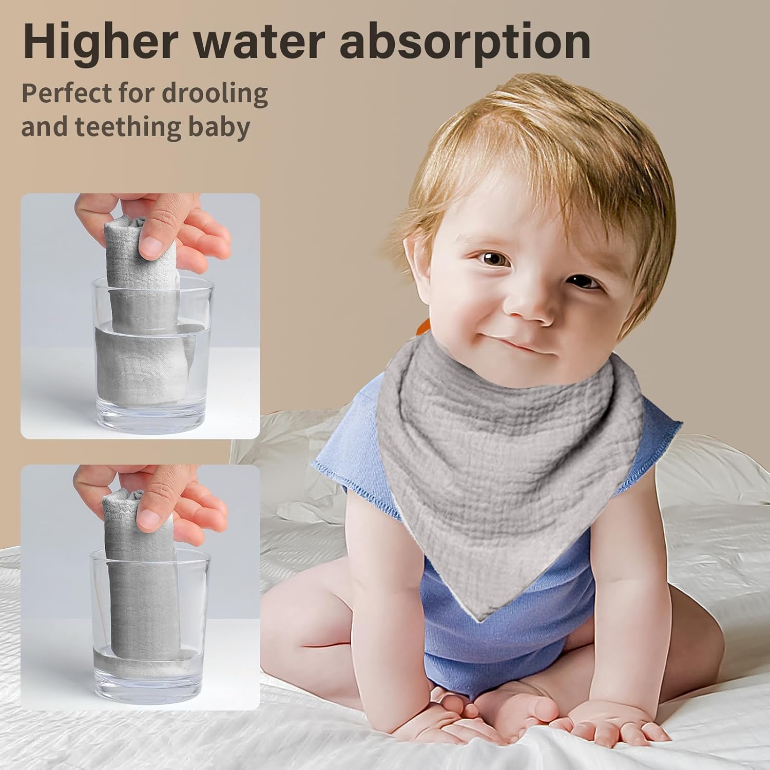 - 【Soft & Cozy】: The Nisxabebe bandana bibs front are crafted from muslin,known for its incredible softness.Thanks to muslin's superb breathability, babies will feel incredibly comfortable while wearing it. The soft fluffy plush backing boosts the bib's absorbency.