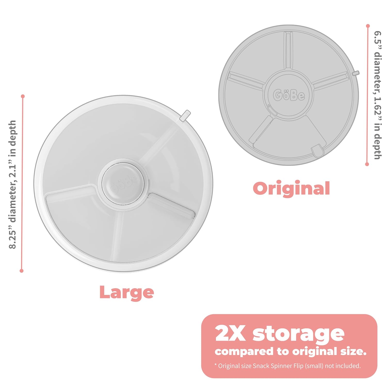 GoBe Kids Large Snack Spinner Slide Bundle with Hand Strap and Sticker Sheet - Reusable Snack Container with 4 Compartment Dispenser and Lid | BPA/PVC Free | Dishwasher Safe | No Spill - Coral Pink