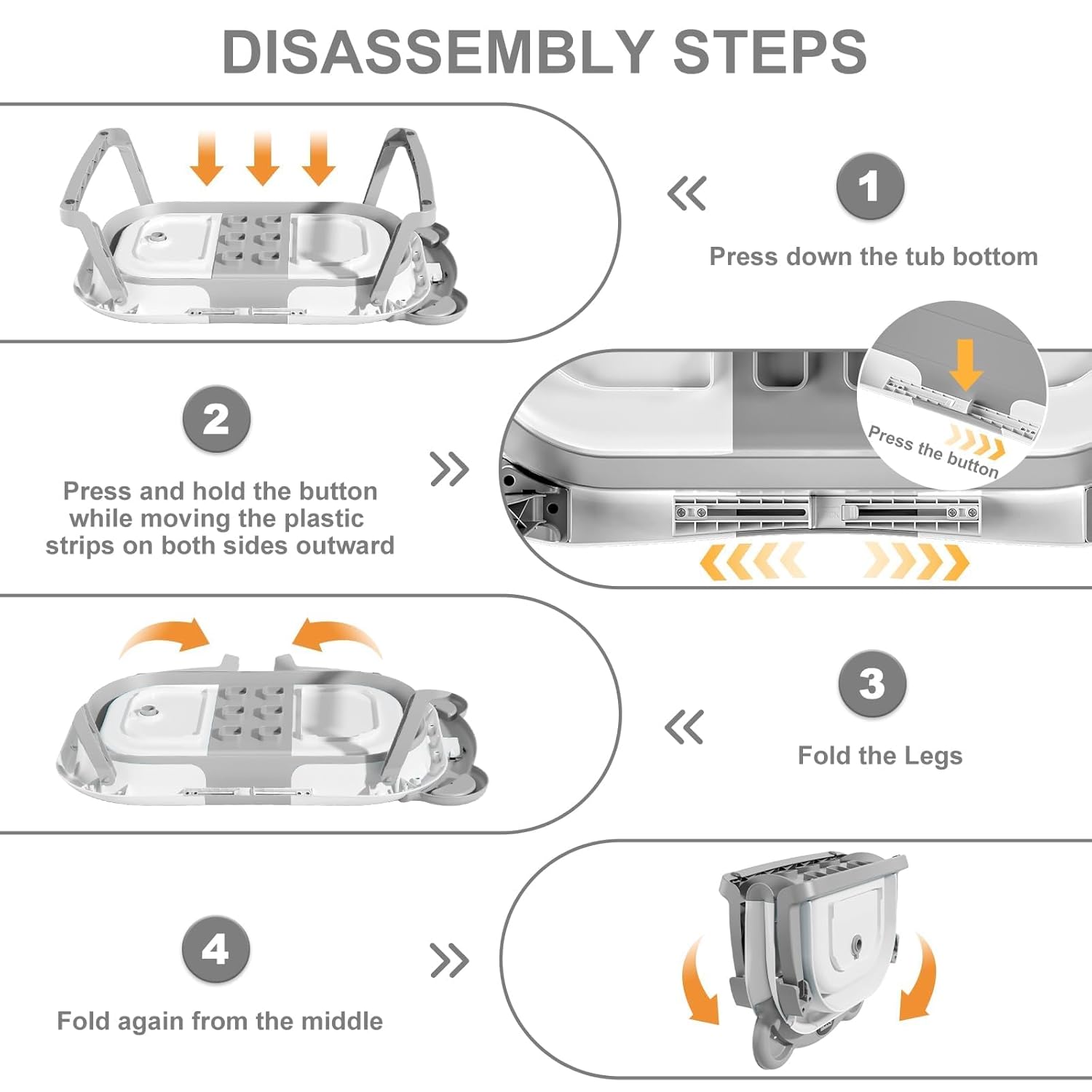 - 【Double-Fold Collapsible Design】Our upgraded baby bath tub can be effortlessly folded in just two steps to a thickness of under 4 inches. It even folds in half, enabling convenient storage in any corner, making it a space-saving solution.