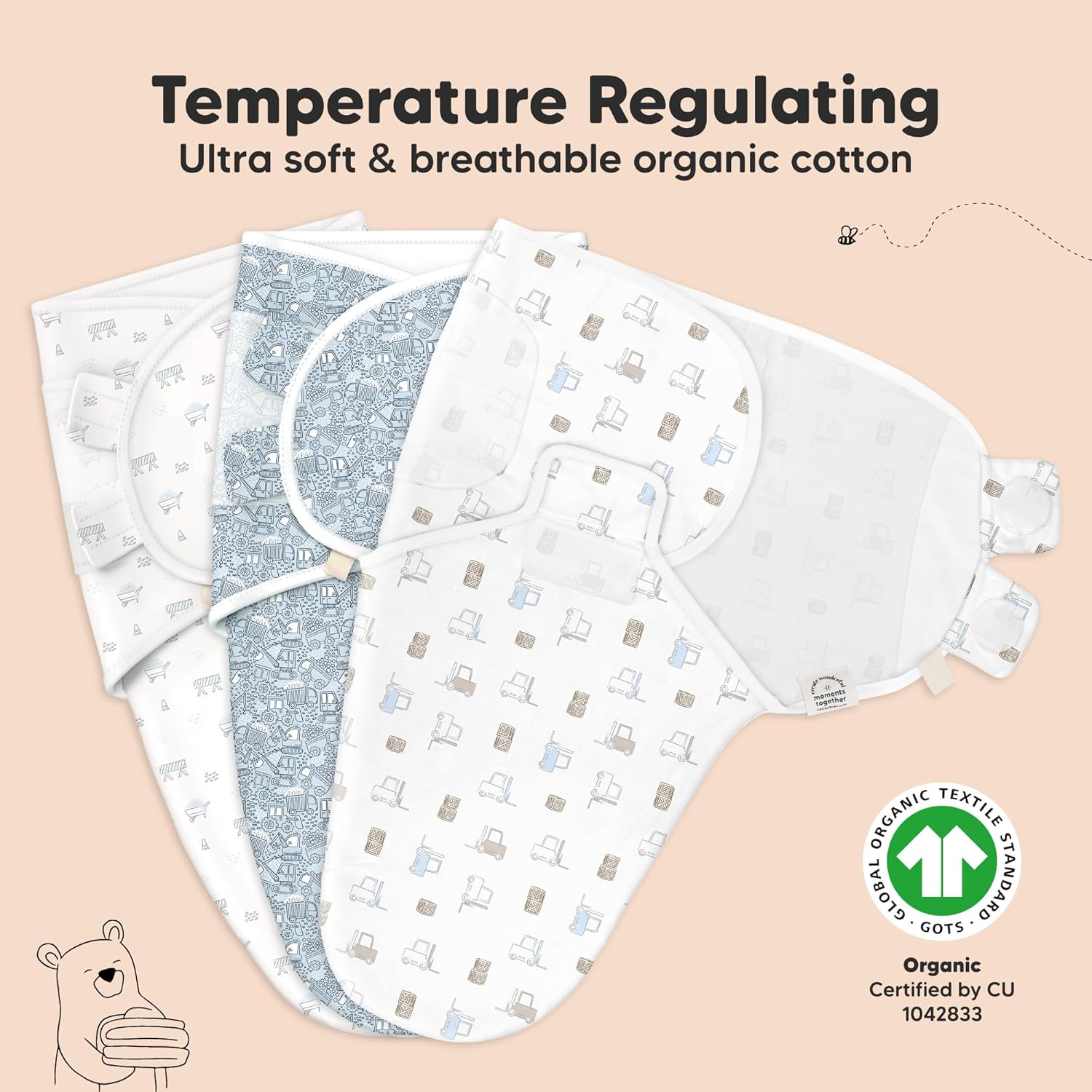 KeaBabies 3-Pack Organic Baby Swaddle Sleep Sacks - Swaddles for Newborns, Infant 0-3 Months, Baby Girls, Boys, Soft & Snug Newborn Sleep Sack, Nursery Swaddling Blankets (Excavation)