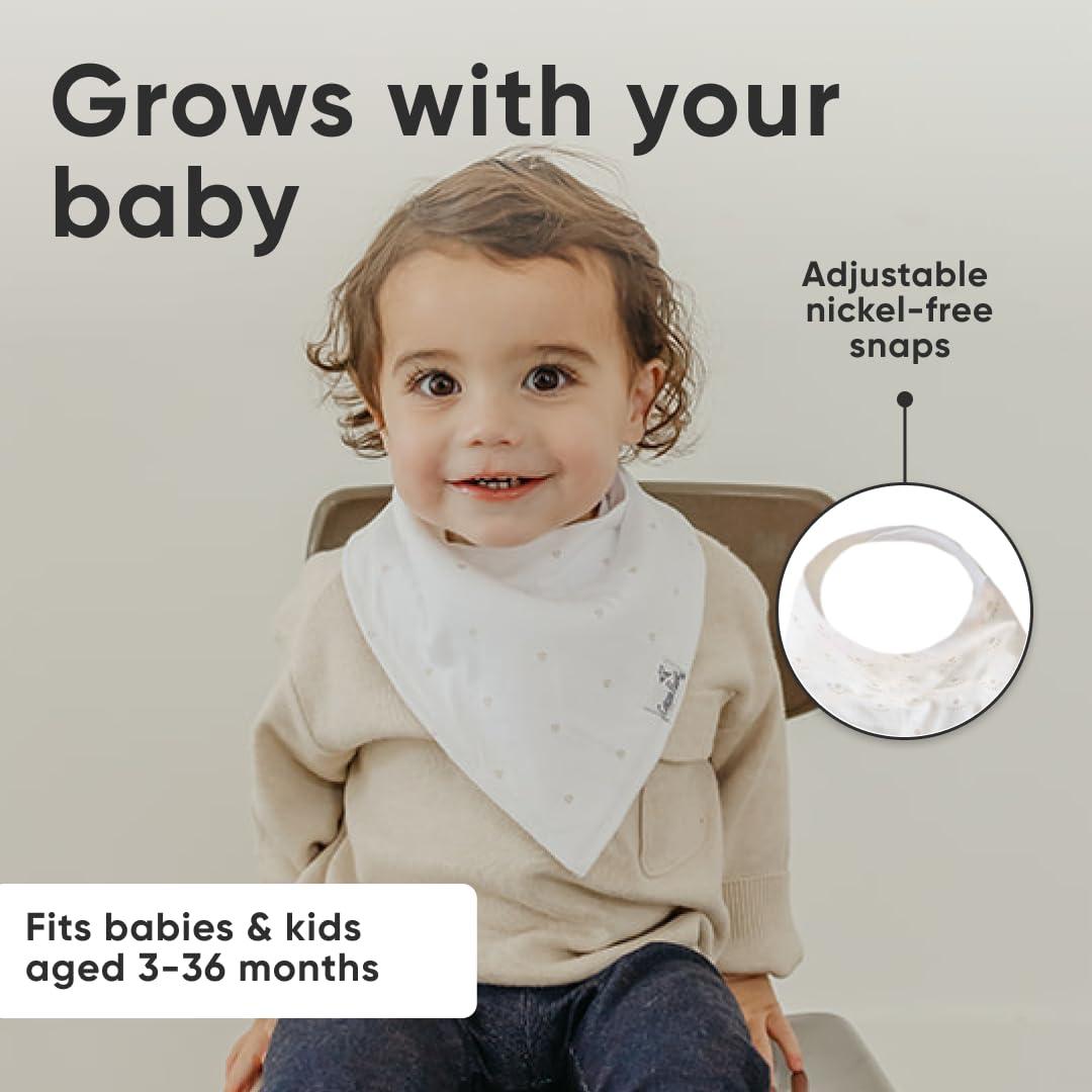 - GROWS WITH YOUR BABY: Each bib features two adjustable nickel-free snaps, allowing for a perfect fit from newborn through toddlerhood (3–36 months).