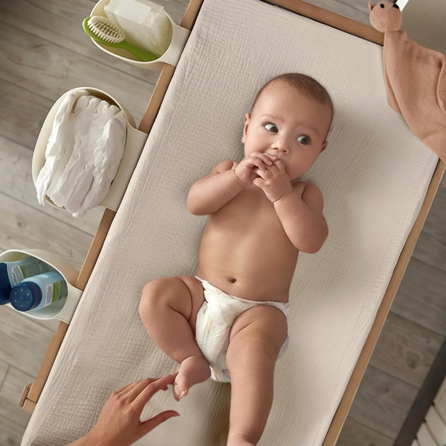 - SOFT AND BREATHABLE: Our changing pad covers is made of 100% muslin cotton. The touch is soft and comfortable, which is very suitable for infant sensitive skin. Lightweight and breathable fabric will keep your baby cool and comfortable.