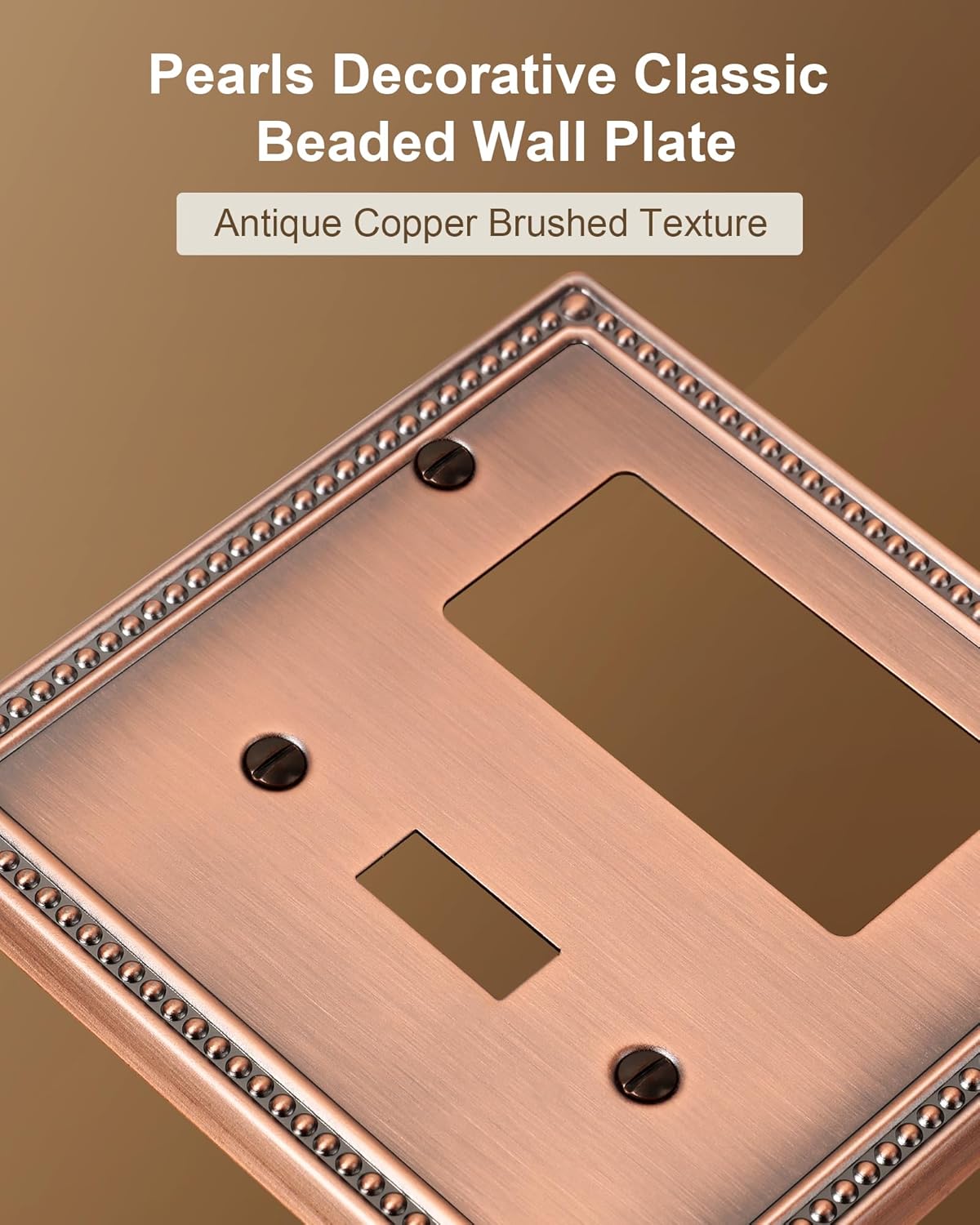 2-Pack Combo Toggle/Decorator Light Switch Cover Plate, Pearls Decorative Electrical Outlet Covers, Metal Wall Switch Plates and Outlet Covers, Antique Copper