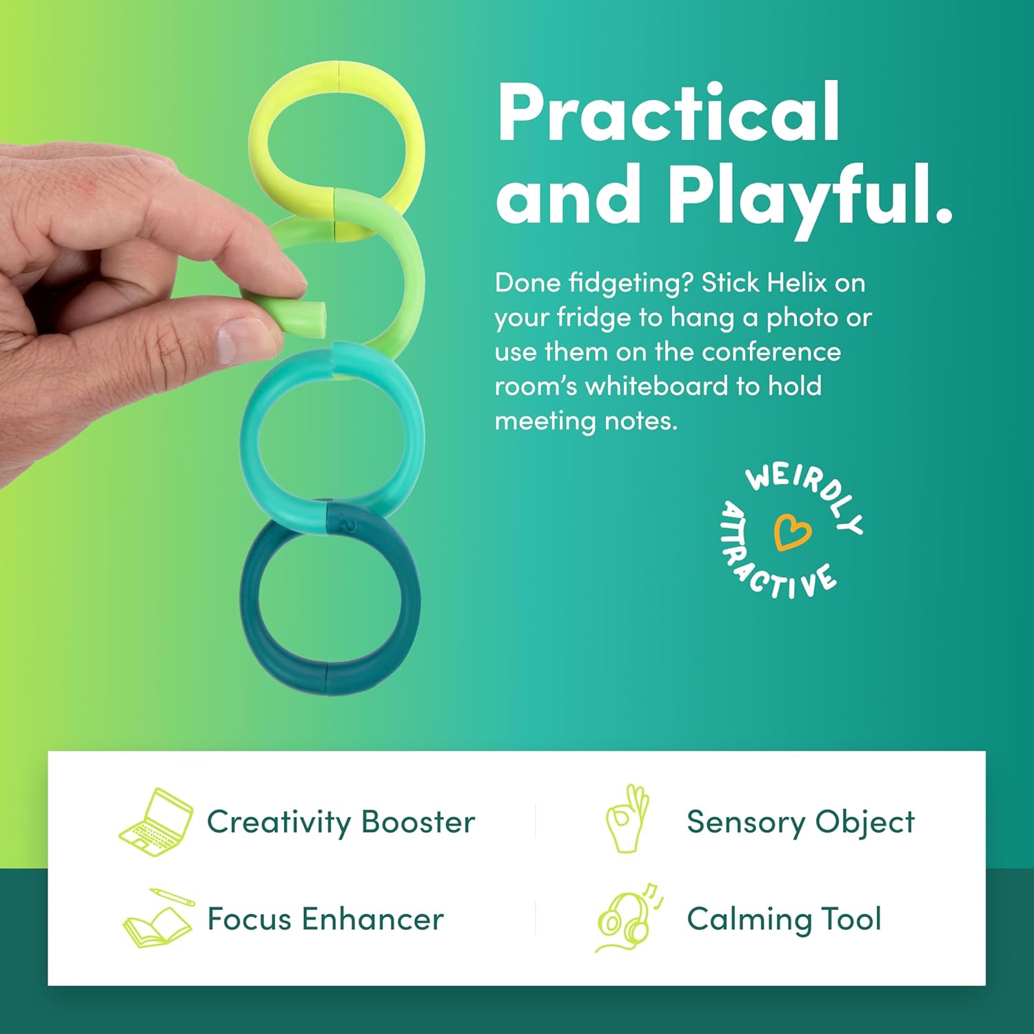 - THE ORIGINAL COIL DESK TOY: 8 piece party for your fingers. If you need to add a little fun to your desk, some flexibility in your routine or some wiggle for your workplace; we made Helix for you!