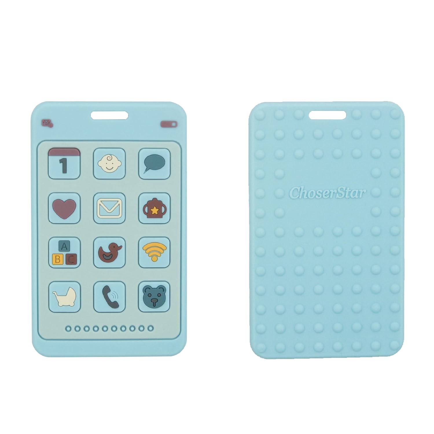 Soft Silicone Phone Shape Teether Boys Girls Baby Molar Teether Chew Toys, Teething Toy (Blue)