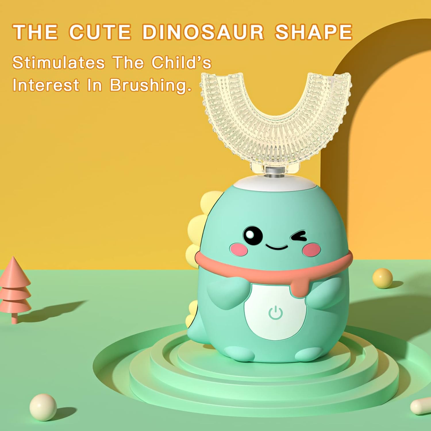 Kids Electric Toothbrush U Shaped Toddler Auto Sonic Toothbrushes with 5 Brush Head,Cartoon Dinosaur Ultrasonic Toothbrushes for Children 2-12 Years,360° Full Mouth Cleaning Automatic