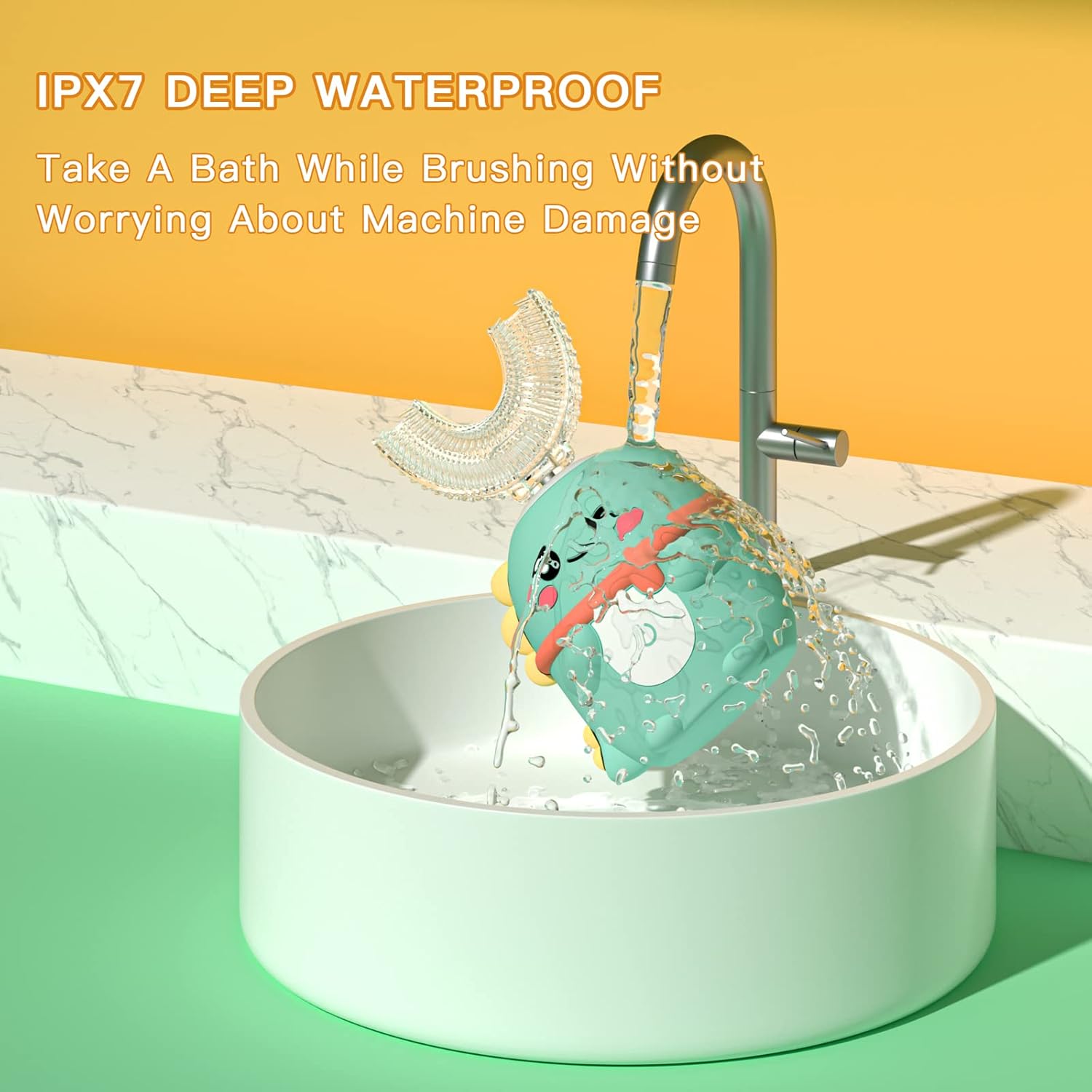 • Whole Mouth 360° Clean: Auto toddler toothbrush with 45° tilt brush head and 90° bottom brush would clean your child's teeth 360° in all directions, without missing any small deciduous teeth, effectively removing plaque