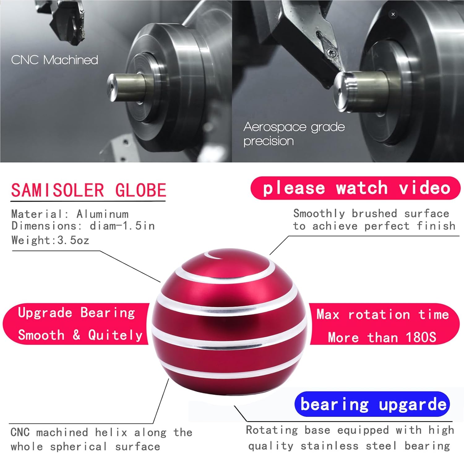 • 【Please watch video】1.5" Size fidget-toys, Aluminum metal and machined by CNC. High-quality made.Spinning Up 180 Seconds.