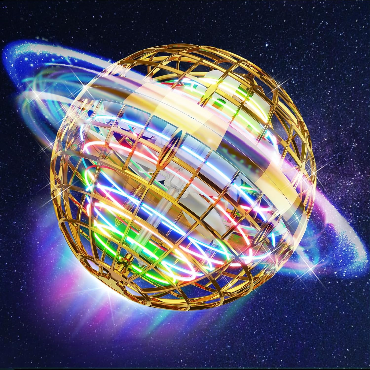 TOMZON Galazy Ball Flying Orb Ball for Boys Girls, Hover Ball Boomerang Fidget Spinner, Drone for Kids with Colorful Light Flying Spinner, A32 Yellow
