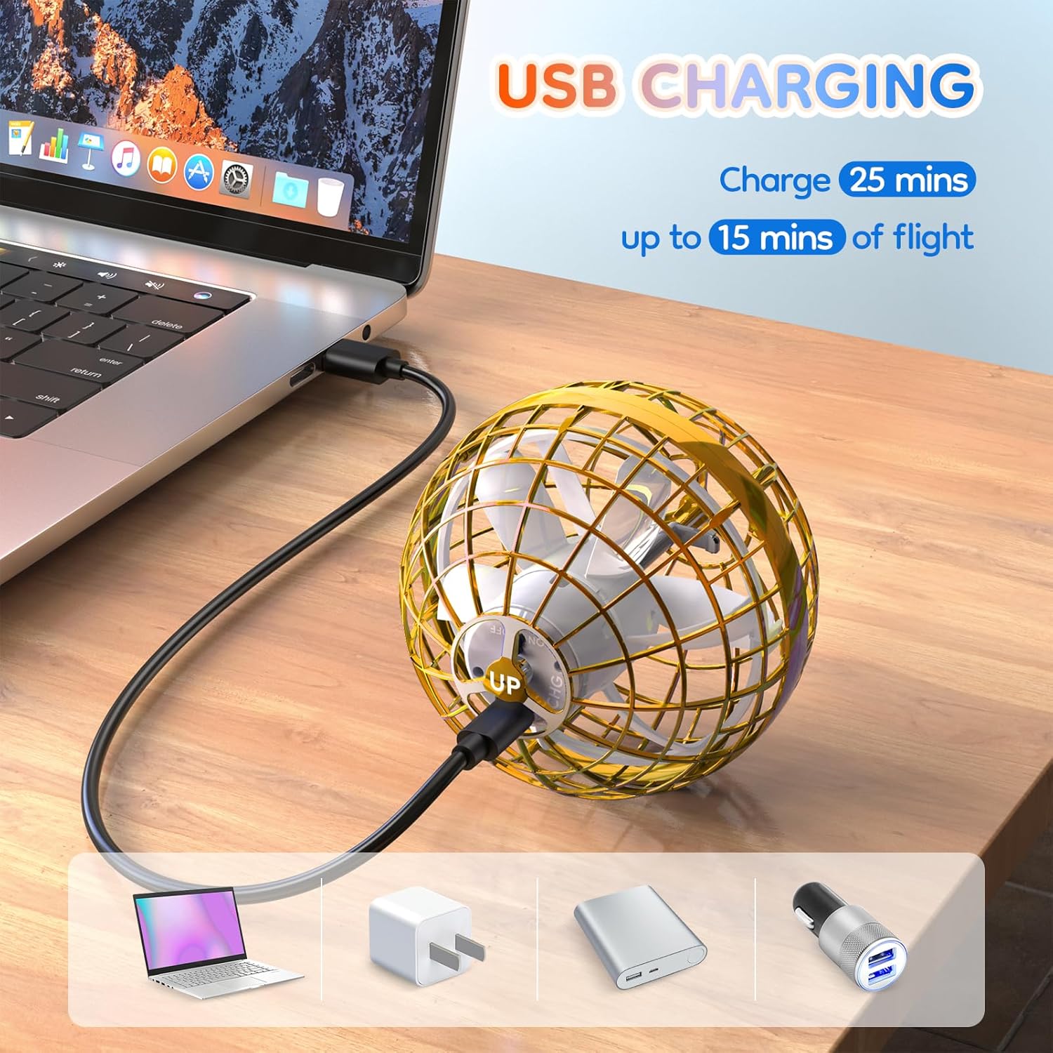 - 【Hand Controlled Drone Toy】 3 playing methods. Throw flying orb ball so comes back like a boomerang. Hand operated like a levitation mini drone. Straight fly ball to your partner. You may need practice before you can skilled use of it.