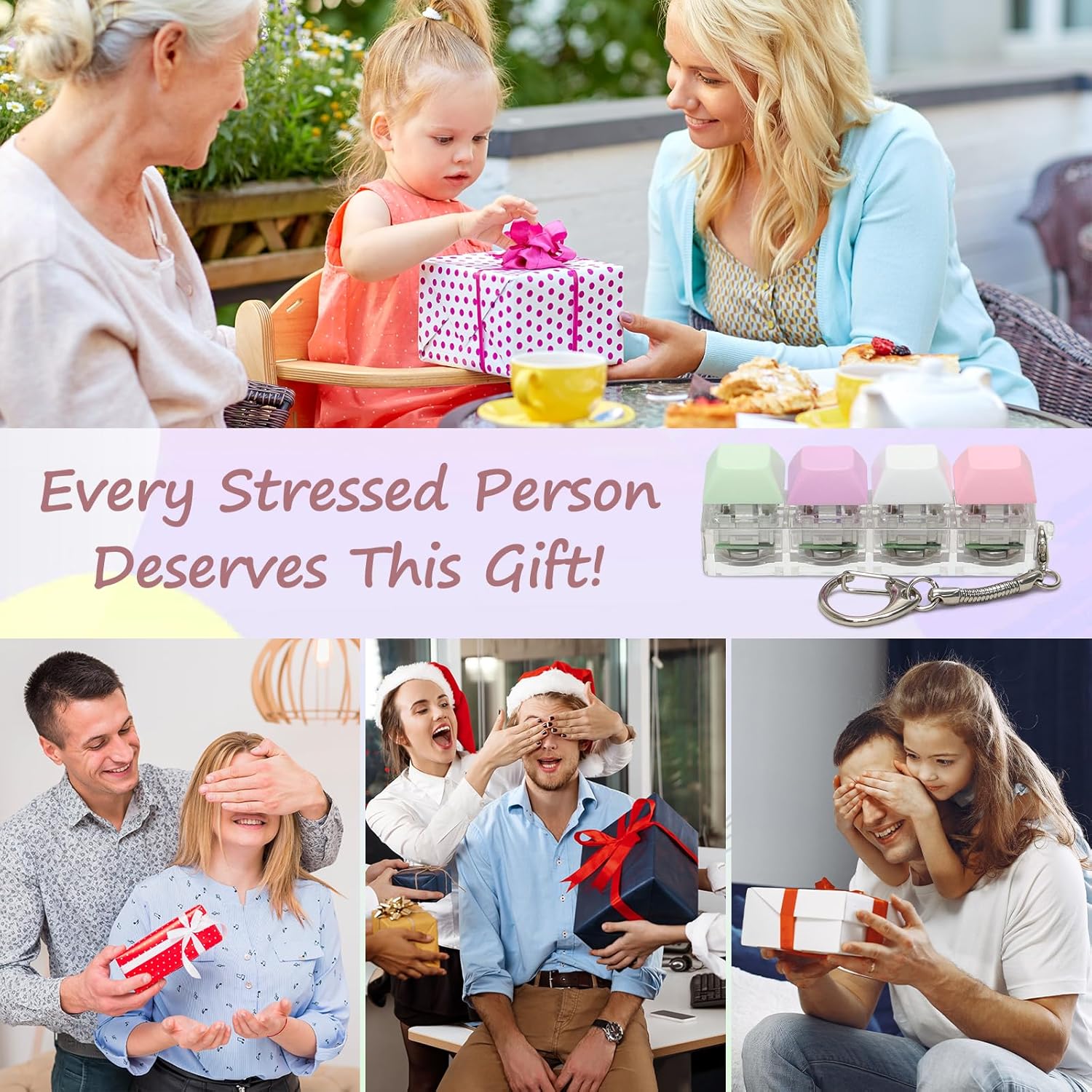 - Relieve Stress: This fun keyboard keychain fidget toy is great for everyone. It makes this soft click sound like you hear using your keyboard. Provides a fun and engaging way to relieve stress and anxiety while working or typing, and is exercise for typing wrist pain,making it the perfect tool for improving focus and productivity