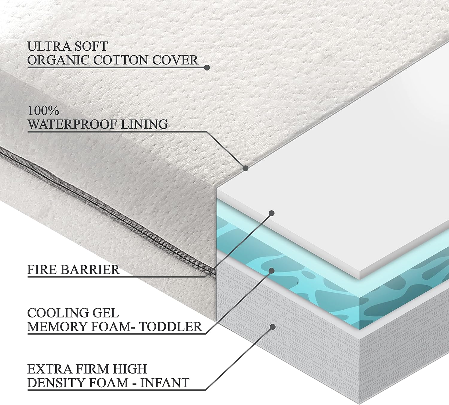 - THE MATTRESS THAT GROWS WITH THEM | Dual-Sided Baby Pad Features Ventilated, Breathable Dual Layers, Providing a Firm Surface for Newborns & Soft, Moldable Memory Cooling Foam Gel for Toddlers | Give Your Tot the Comfort, Safety & Support They Need for a Restful Nightâs Sleep | Standard Crib Size 52âx27.5âx5.5â