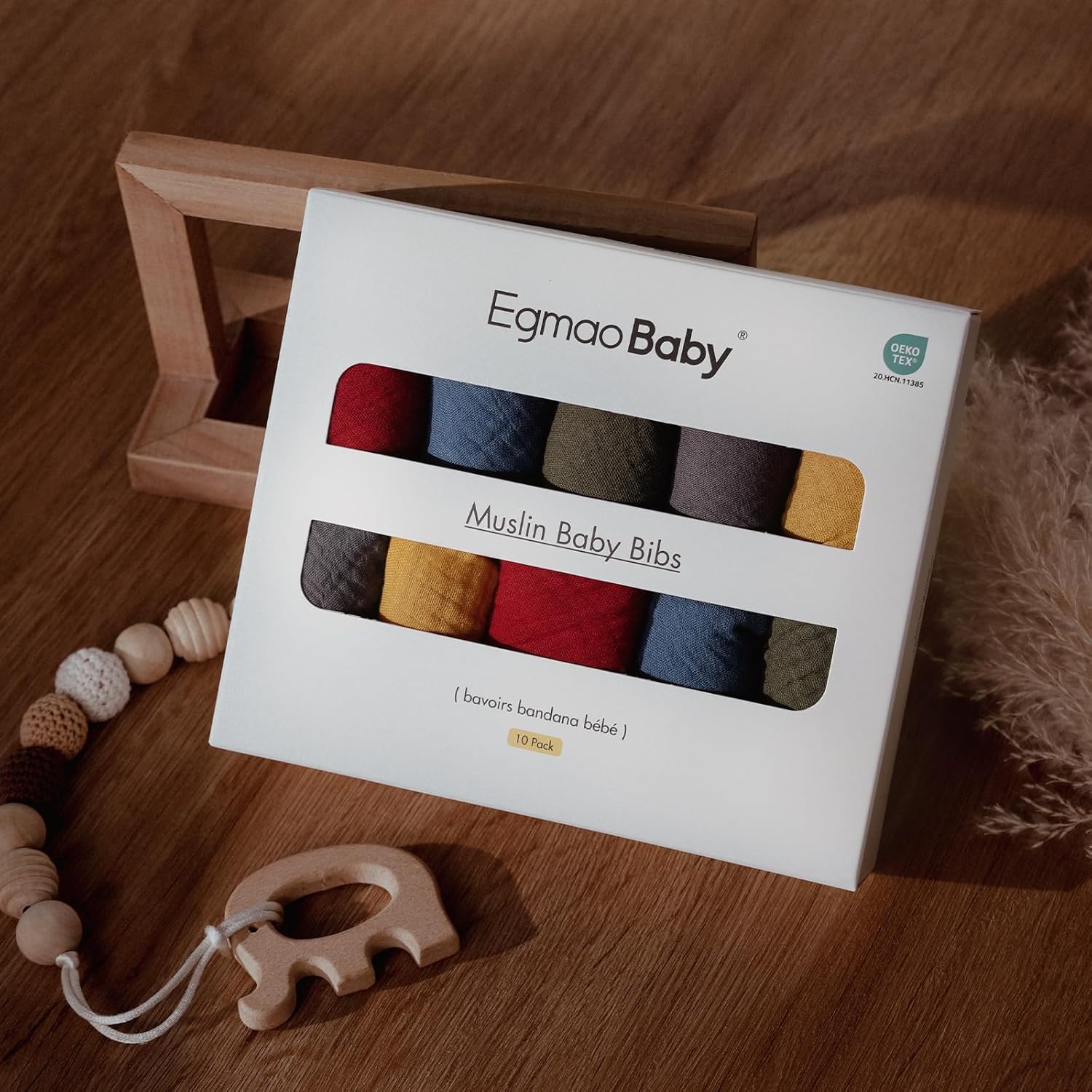 - 10-Pack Cute Baby Muslin Bibs for Boy and Girl - Our 10 pack muslin baby boy bibs and girl bibs are exclusively designed by egmao baby to ensure that your baby never runs out of styling options. Our baby muslin bibs are unisex and easy to match, making them a fuss-free teething baby essential.