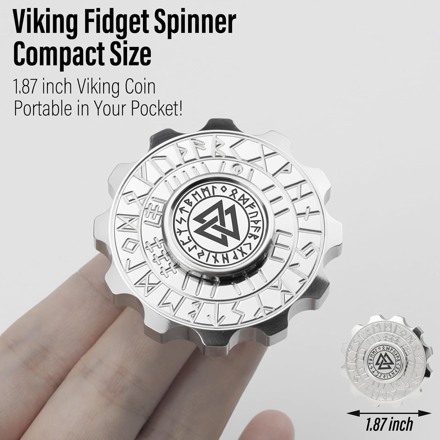 FREELOVE Metal Fidget Spinner, Viking Pirate Haptic Gyro, Heavy Stainless Steel Hand Spinning, Small Round Gear Fidget Block, Premium Bearing Silent Long Spinning for Adults Anxiety Cool, Silver