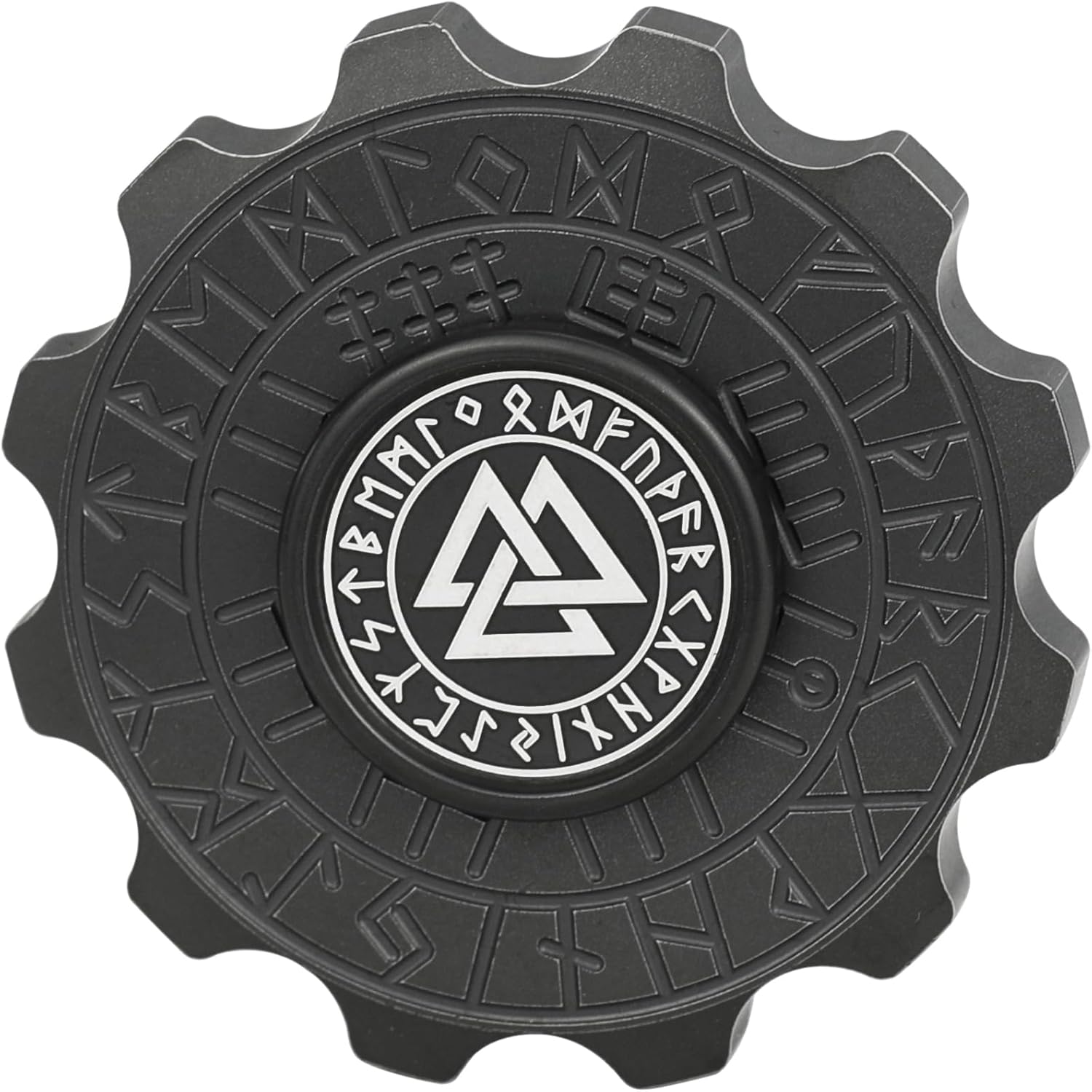 - [Good Looking] Viking Pirate Fidget Spinner design from Viking Pirate culture. Each side engravings with symbols or numbers, you could utilize it for memory practice, a random number generator, and something that could serve as a coin flip or dice roll outcome. Fingertips are cool lasered with mysterious symbols. It's visually appealing for sure.