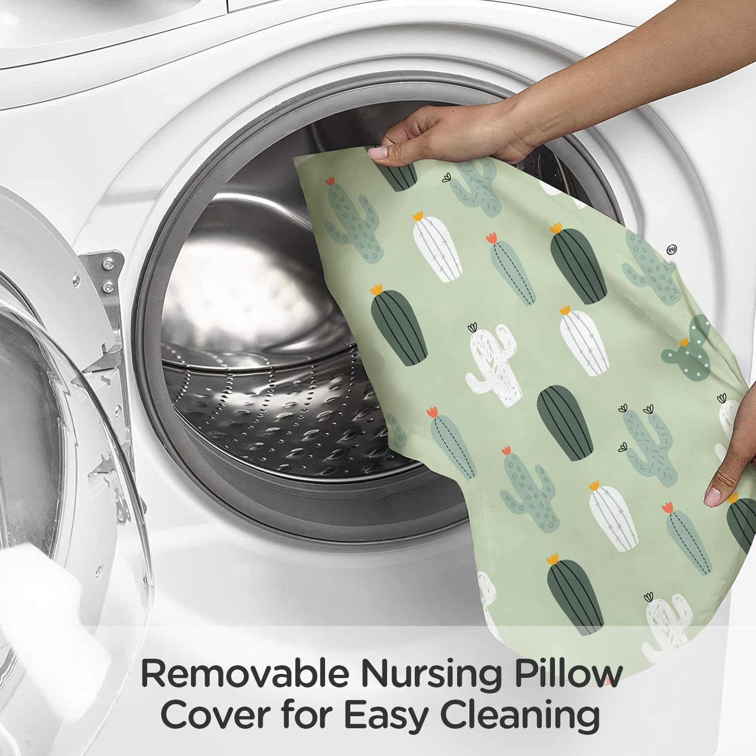 Little Grape Land Nursing Pillow for Infants, Breastfeeding Pillows, Baby Support Pillow for Nursing, Bottle Feeding, Tummy Time with Machine Washable Cover & Breathable Filling (Blossom Cactus)