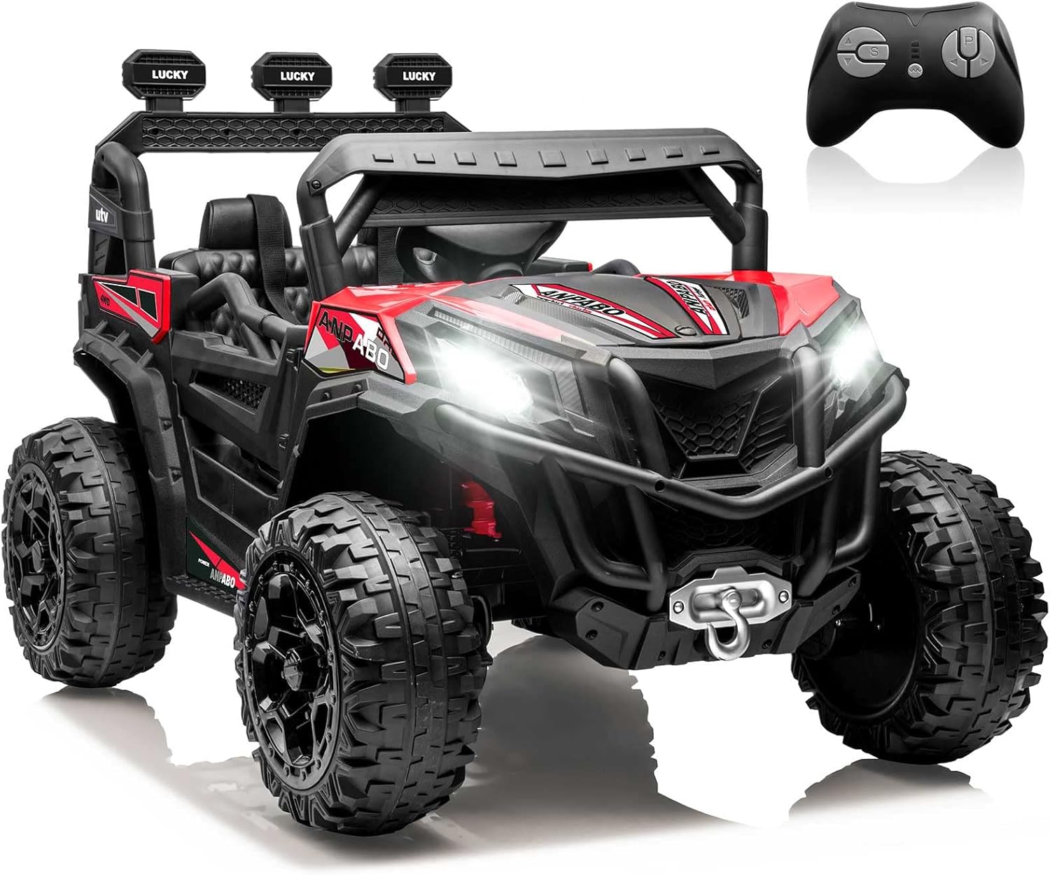 ANPABO 24V 4X4 Ride on Car Truck w/Remote Control, 4WD/2WD Switchable Kids UTV, 19" Spacious Seat, 4 Shock Absorbers, Soft Start, Music Player, Electric Car for Kids Ages 3+(Red)