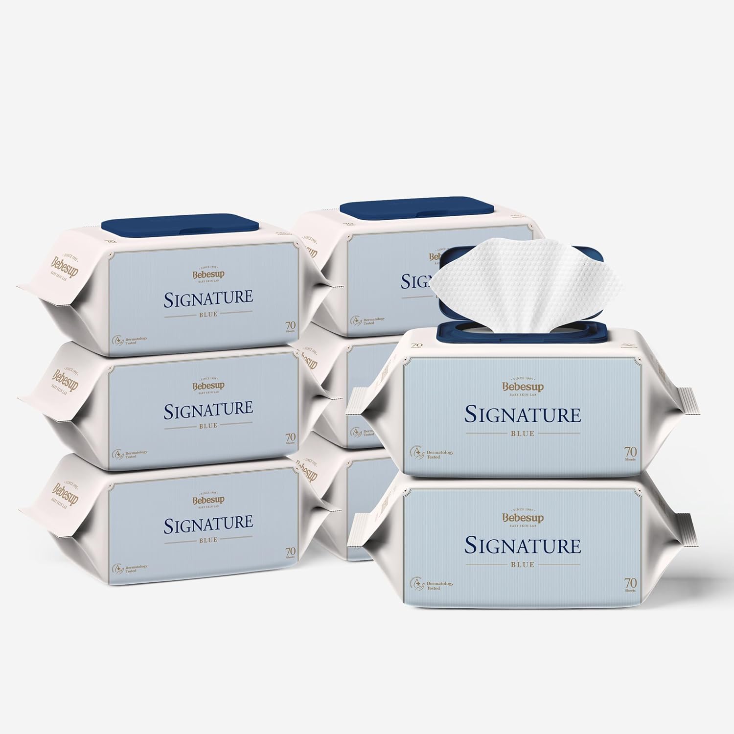 BEBESUP- Korea’s #1 Signature Baby Wipes - Hypoallergenic Water-based Unscented Alcohol-Free Ultra-Thick Super Seed Extracts Organic Plant-Based for sensitive skin Flip-Top 560 Count (8 Packs)