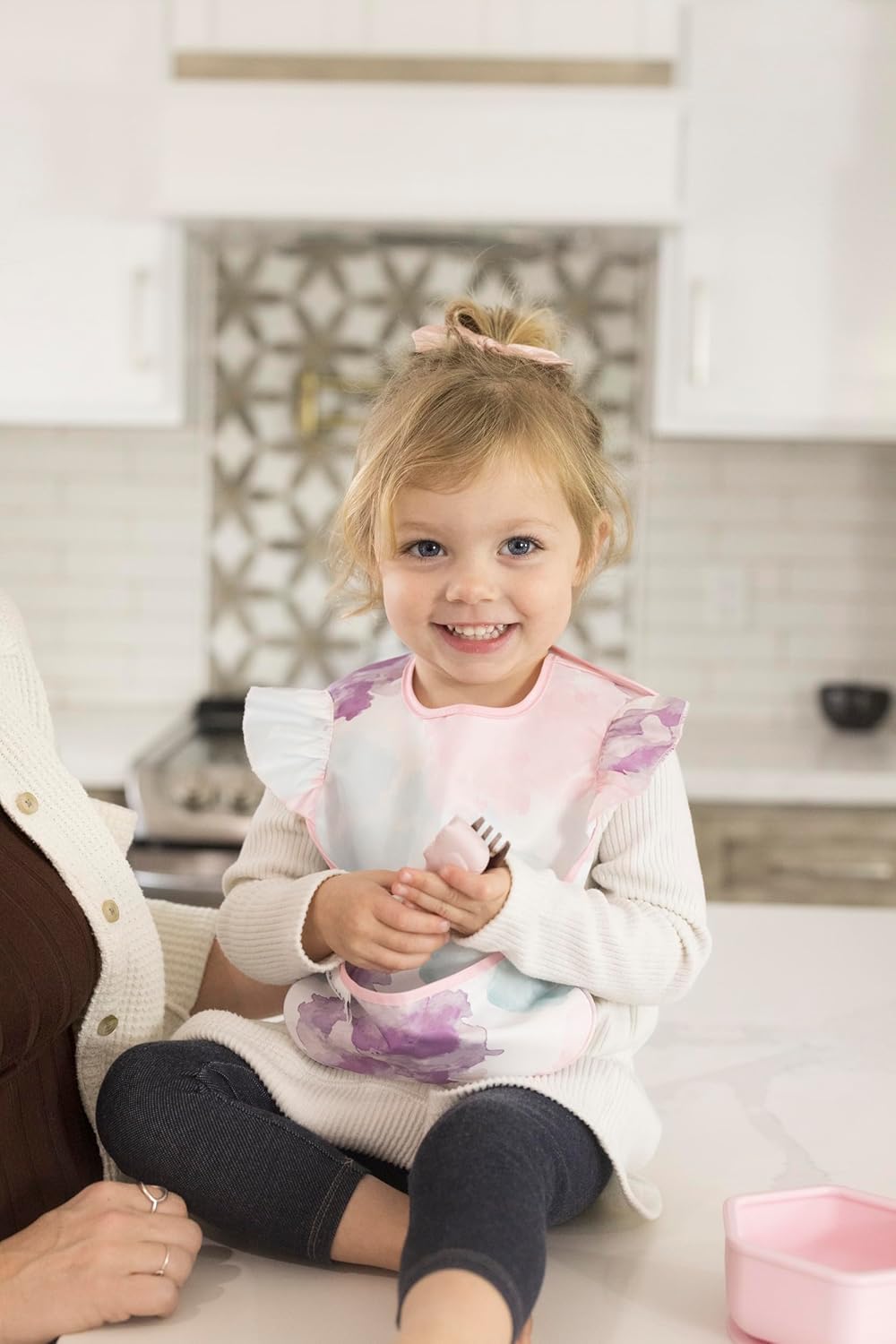 Tiny Twinkle Mess Proof Baby Bibs for Eating - Waterproof, Wipeable Bibs - Toddler Bibs - Travel Friendly - PFAS, PVC, BPA, Phthalate Free - Baby Food Bibs(3 Pack,Cotton Candy)
