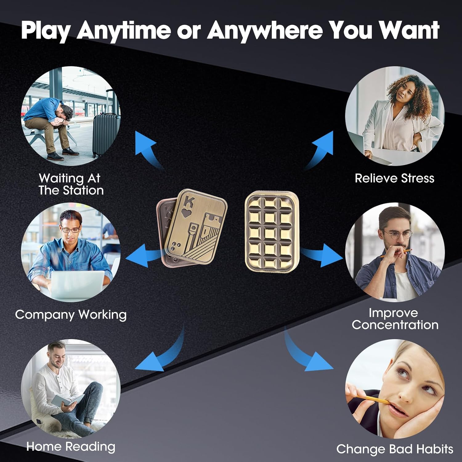 - 【High value Fidget Blocks Set】- There are 2 types of fidget toys, fidget slider/poker push card in 1 set. Metallic Slider have many small upwardly raised squares, as well as built-in anti-friction stickers; Gold K Card Slider have intricate skull carvings on the front of the metal fidget and a poker-style design on the back, all of which have delicate and smooth surfaces, and are of medium weight and size, making them very comfortable to hold.