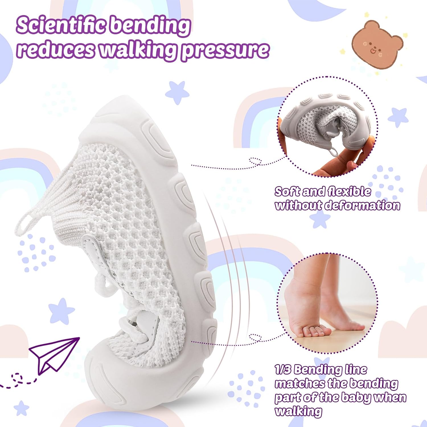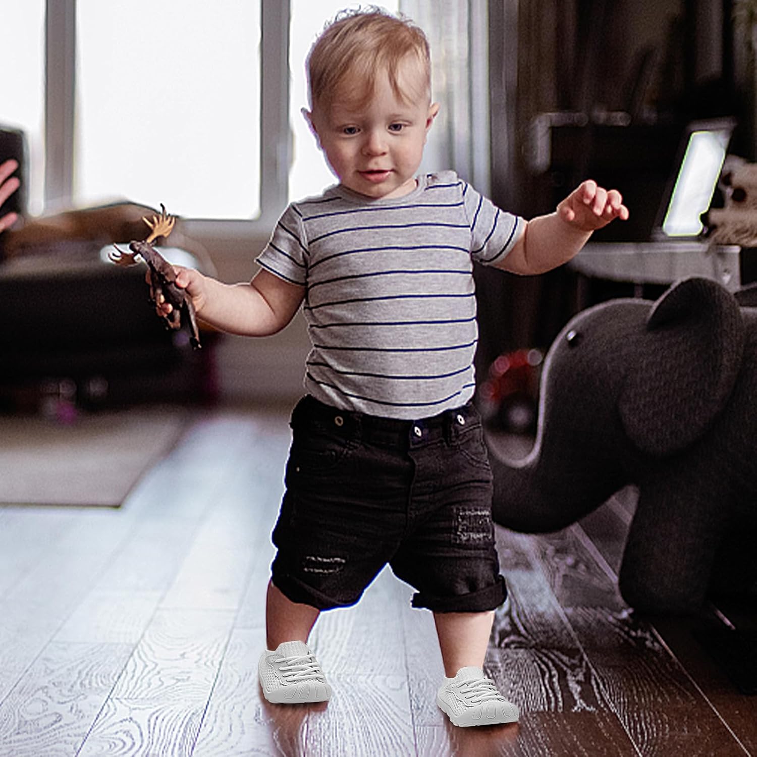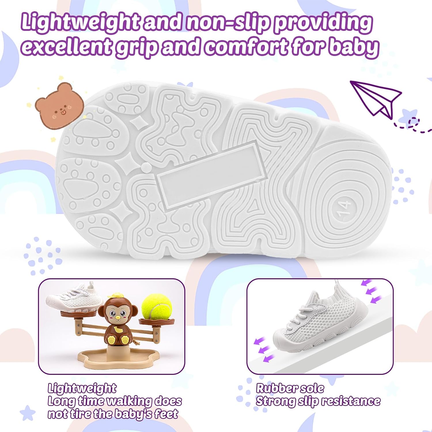 - Step into versatility with our Toddler Shoes, designed for both indoor play and outdoor exploration. Crafted from premium, safe knit, they offer a cozy hug for little feet. Engineered with scientific foot support, they're perfect for learning to walk, running, exercising, or playing anywhere. From crawling indoors to big adventures outside, these shoes inspire confidence with every giggly step.
