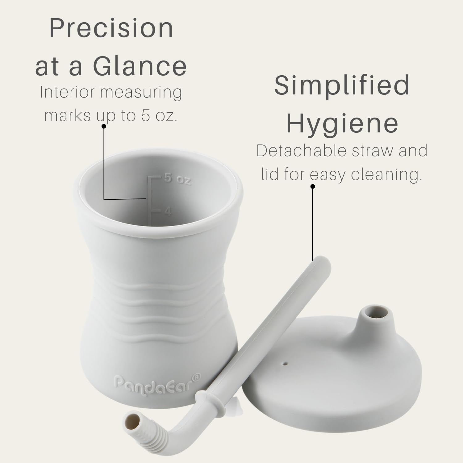 - Perfectly Sized for Tiny Hands: PandaEar silicone training cup is thoughtfully designed for little hands and mouths, making it an ideal choice for your baby's transition from a bottle to a cup. Capacity: 5 OZ