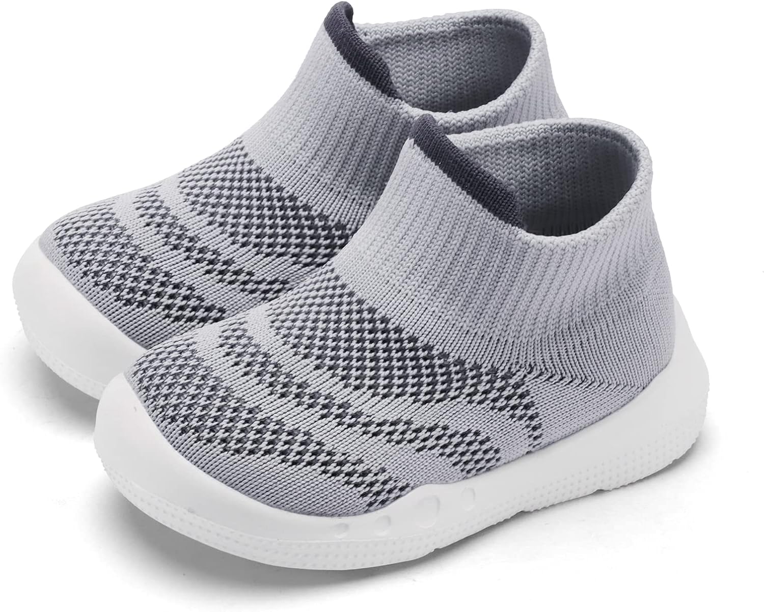 • Easy Put On:Baby walking shoes The one-piece design with stretchy knit collar only takes seconds to for you to slip them on, so babies can jump right into playtime. Toddler slip on shoes let them play in comfort while enjoying their time.