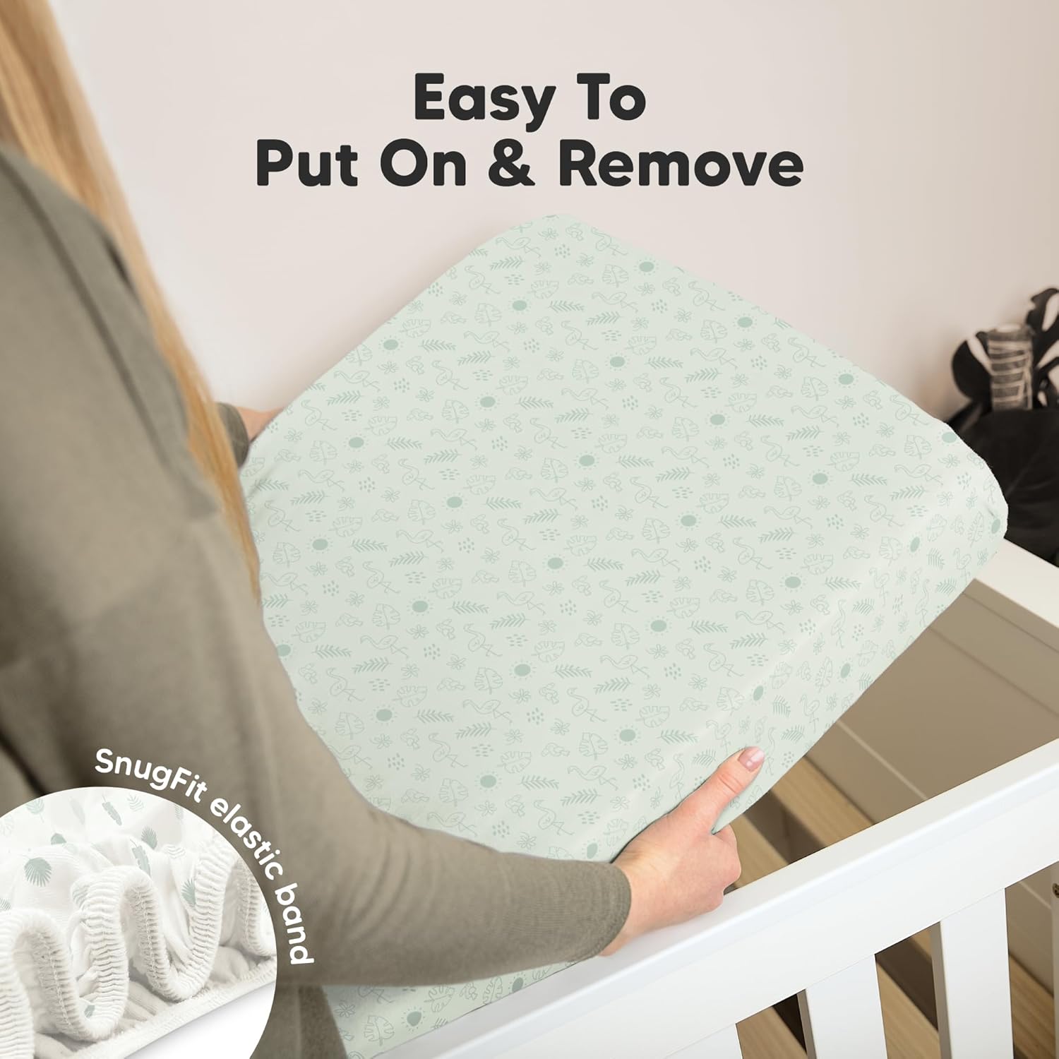 - High Quality Elastic Band - Our organic cotton crib sheets, use premium elastic SnugFit Band seamlessly concealed to ensure these standard crib sheets stay in place securely for safe and soothing sleep.