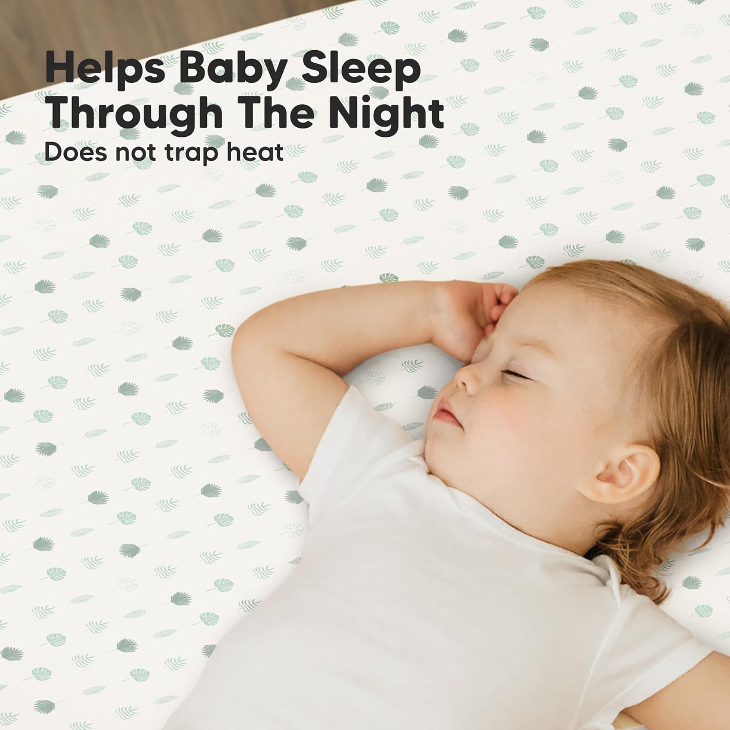 2-Pack Mini Crib Sheets Fitted - 38x26 Pack N Play Sheets for Pack and Play Mattress, Organic Cotton, Soft & Breathable Playard Bedding, Neutral Mini Toddler Bed Cover for Boys, Girls (Tropic Oasis)
