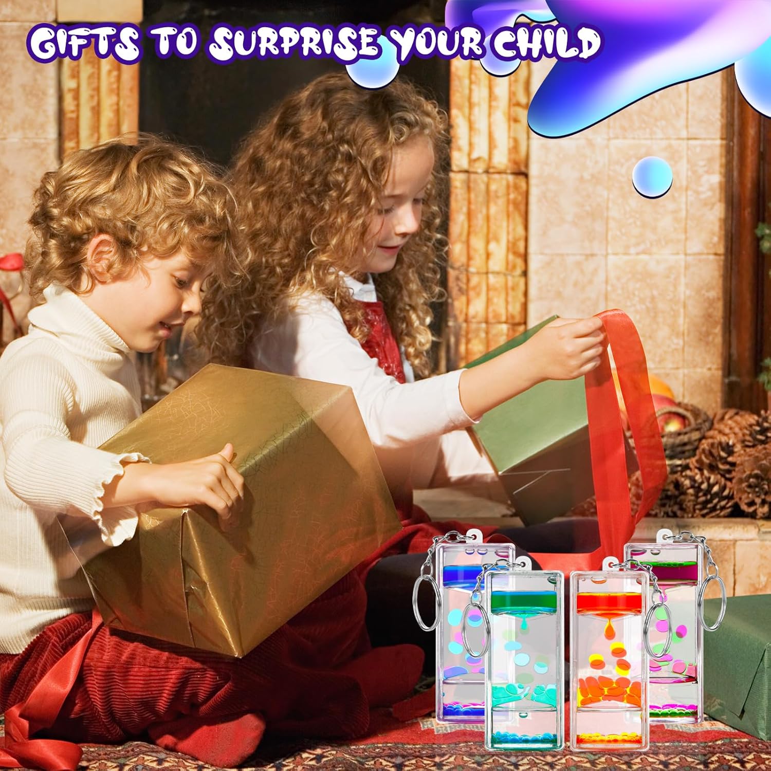 Sensory Fidget Keychain - Vibrant 4-Pack Liquid Motion Bubblers for Stress Relief & Focus - Perfect for Kids, Adults, Travel & Classroom - Ideal Party Favors (4 Pcs Keychain)