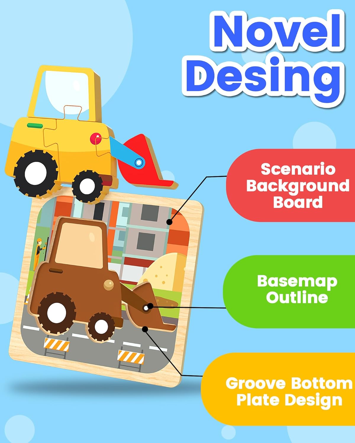 Benresive Wooden Toddler Puzzles, Montessori Toys for 1 2 3 Year Old Boys, Toys for 1 2 3 Year Old Boy Birthday Gifts, 8 Pack Vehicle Toddler Learning Educational Puzzles