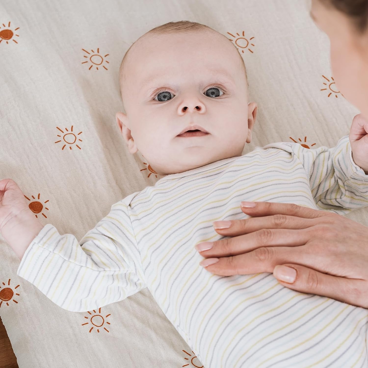 - MUSLIN COTTON: Are you looking for the perfect baby bed sheets? Look no further than our Gllquen Baby bassinet sheets! Made with 100% muslin cotton, these baby sheets have excellent air permeability and moisture-absorbing properties that keep your baby's skin dry and comfy, providing comfortable care and a good night's sleep. Rest assured, every product meets the OEKO-TEX Standard 100 and is safe for babies