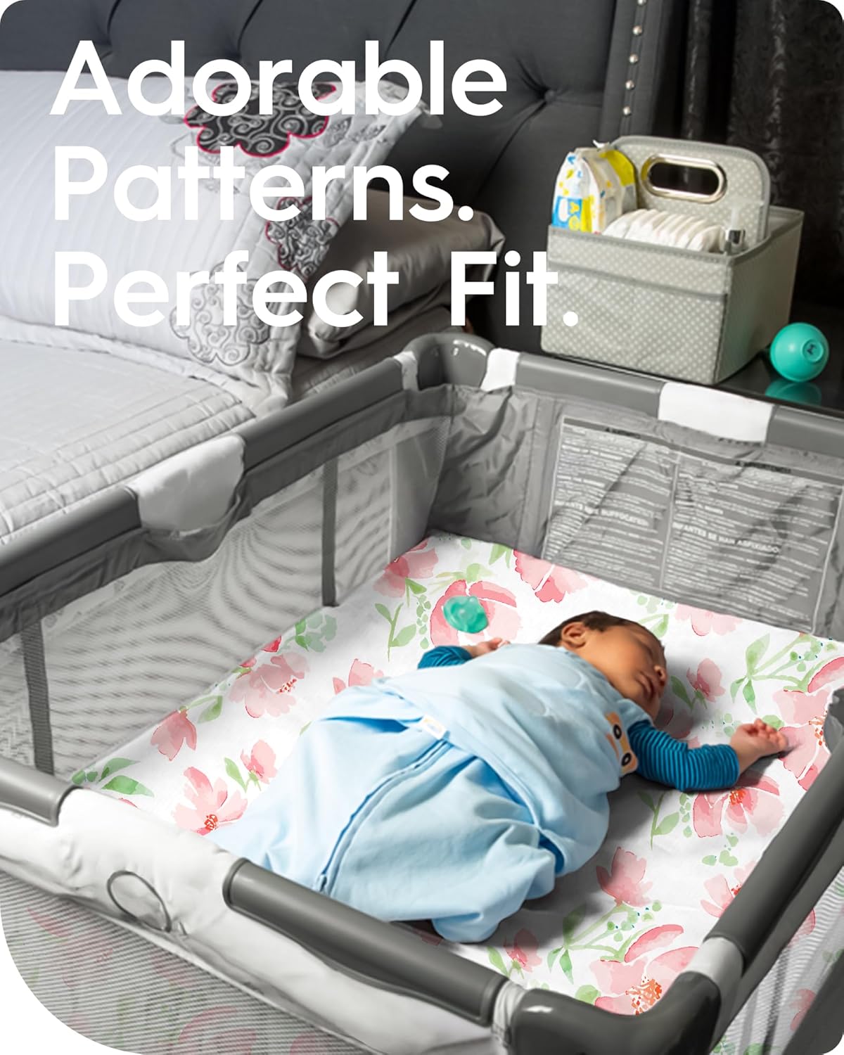 - WRAP LOVE AND HAPPINESS in TotBasic mini crib sheets fitted - Add modern patterns and vibrant colors to your nursery decor and bring joy to your little one's surroundings, with an irresistible selection of cute, stylish, and inspiring designs. Our playpen mattress sheets are the perfect choice for baby showers, birthdays, Christmas, New Year's gifts. Come in premium, tidily bundled 2-pack giftable packaging. Let your gift create memories that will be cherished for a lifetime.