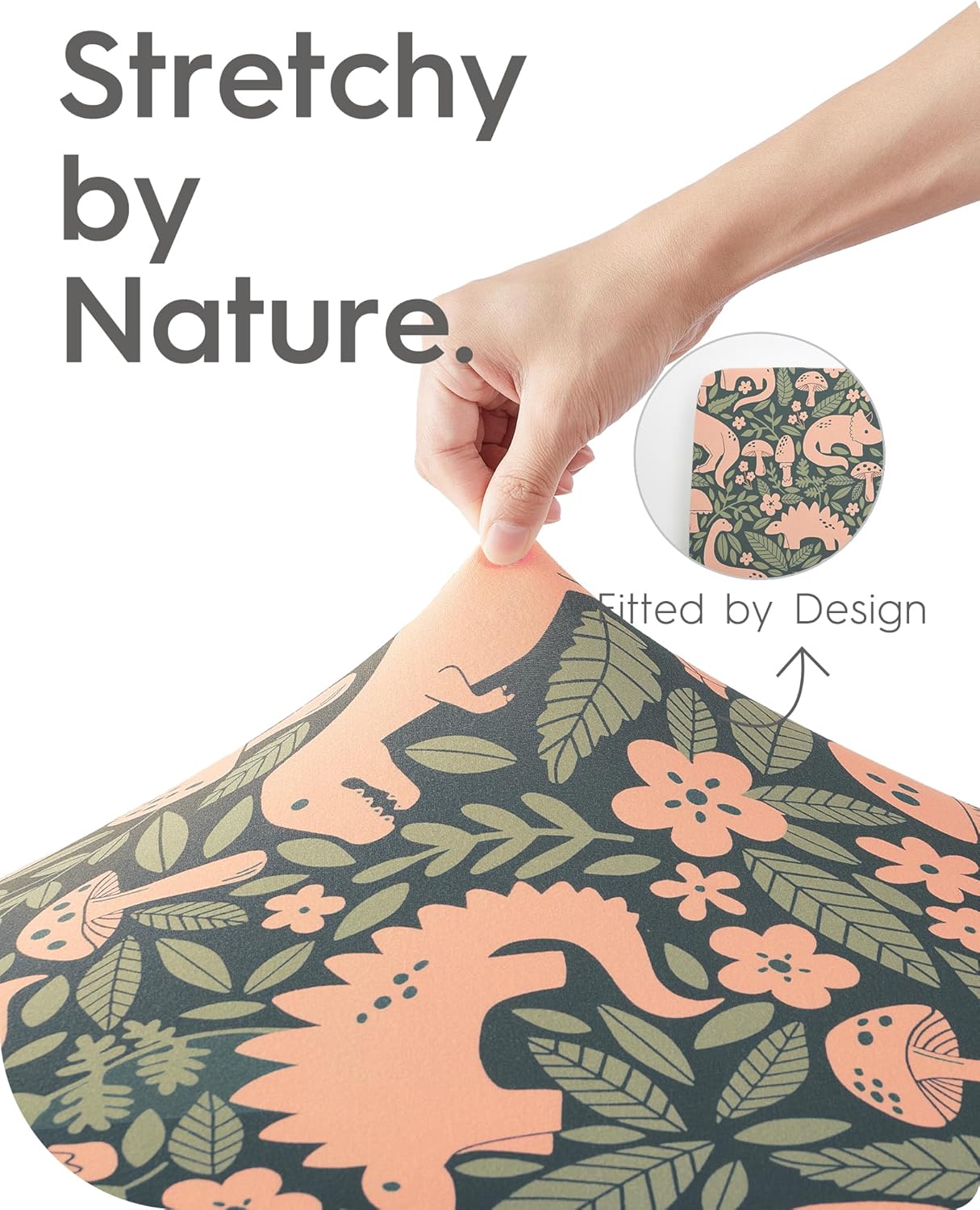 Pack N Play Sheets Fitted, TotBasic Ultra Soft Dinosaur Mini Crib Sheets, Premium Jersey Knit Pack and Play Sheets, Stretchy Neutral Play Yard Sheets for Pack and Play Mattress, 2 Pack(Vintage Dino)