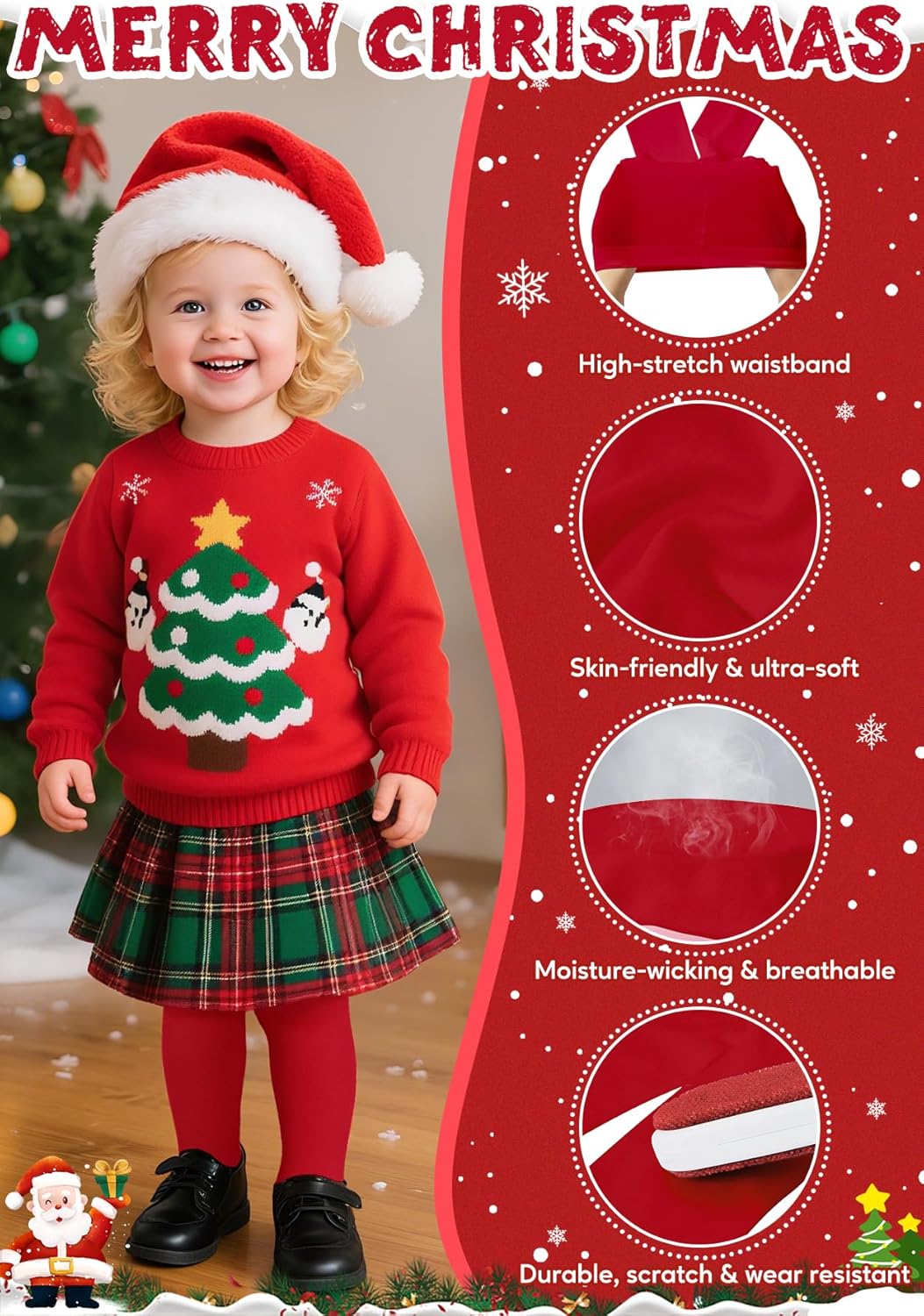 • 【Reinforced Toes , Durable, Fade-Resistant & Easy to Clean】 Specially reinforced toe area helps prevent snags and wear, offering extra durability throughout the season. Even after multiple washes, the toddler tights retain their vibrant color and stretch. Easy to care for and made to last—keeping up with all the excitement of the holiday season.