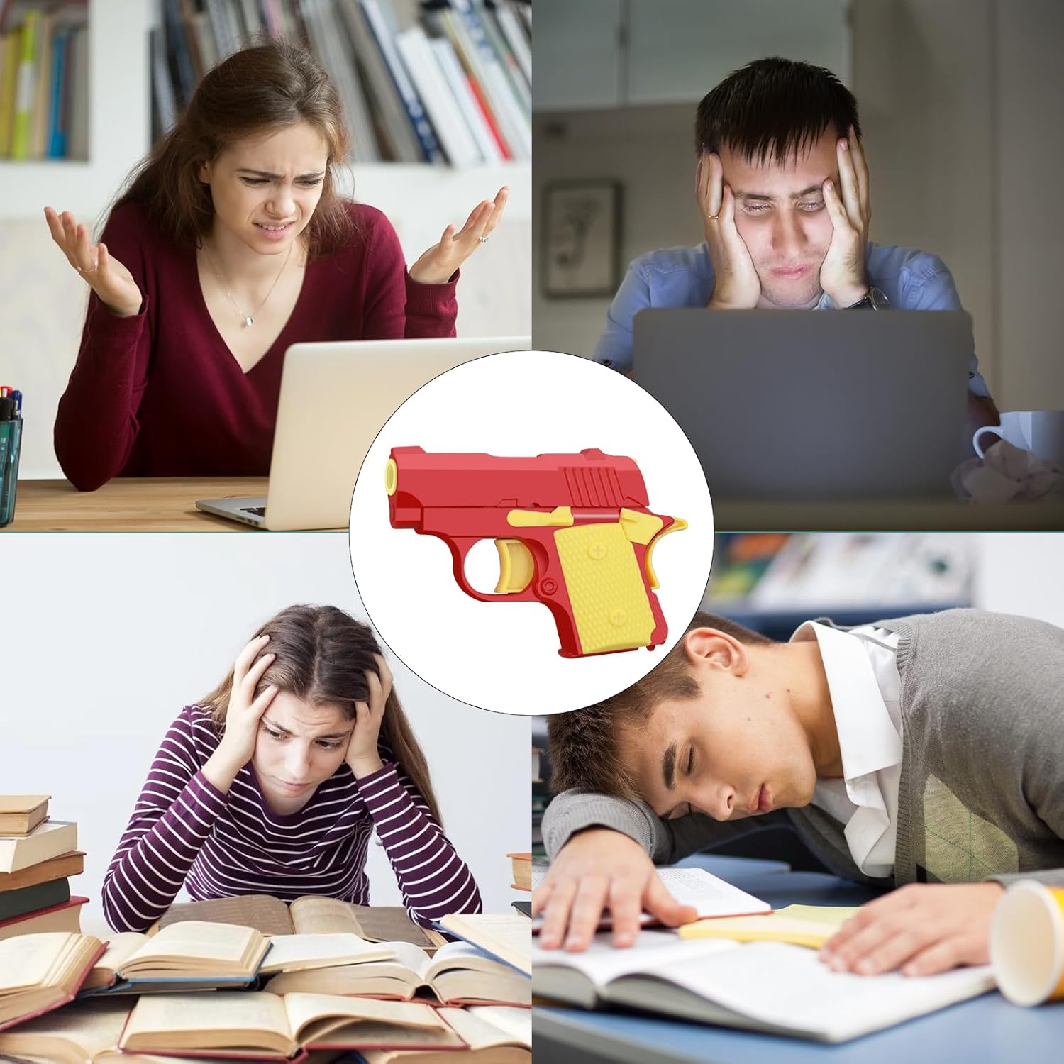 - 🔫【High Quality Material】This is a cool one-handed anxiety stress reliever pistols toy, made of sturdy ABS plastic with smooth edges that won't hurt your hands. When you feel irritable, anxious or bored, you can make the gun chamber bounce back and forth continuously by pulling the trigger, which can relieve anxiet.