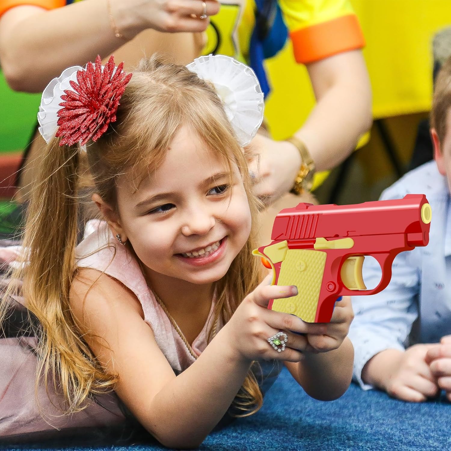 - 🔫【Portable and Popular Design】The compact size of these toys makes them easy to carry with you wherever you go. Slip them into your pocket or bag, and you'll always have a simple and effective stress relief tool at hand. You can play with your friends in office, home, school, underground, station, outdoor and anywhere else. Your friends will surely think you are the cool guy to pass the time.