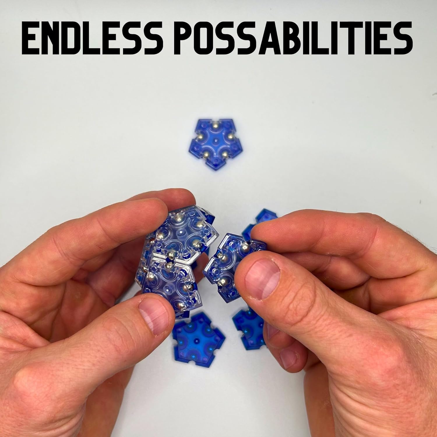 - MAGNETIC FIDGET GEODE: Dive into the world of palm-sized pentagons infused with rare earth magnets. The Geode creates a captivating desktop dodecahedron—your own design masterpiece at your fingertips!
