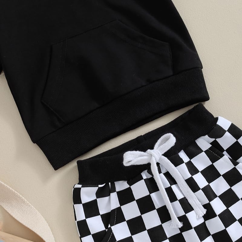 • CUTE DESIGN: Newborn Baby Boys Summer Outfit T-shirt Shorts 2Pcs,Checkerboard print, baby boy's t-shirt features hood and short sleeves. Baby boy shorts with elastic waistband for a comfortable and secure fit.Toddler Boys Outfits Checkerboard Print Hooded T-Shirt and Elastic Shorts Summer Clothes Set