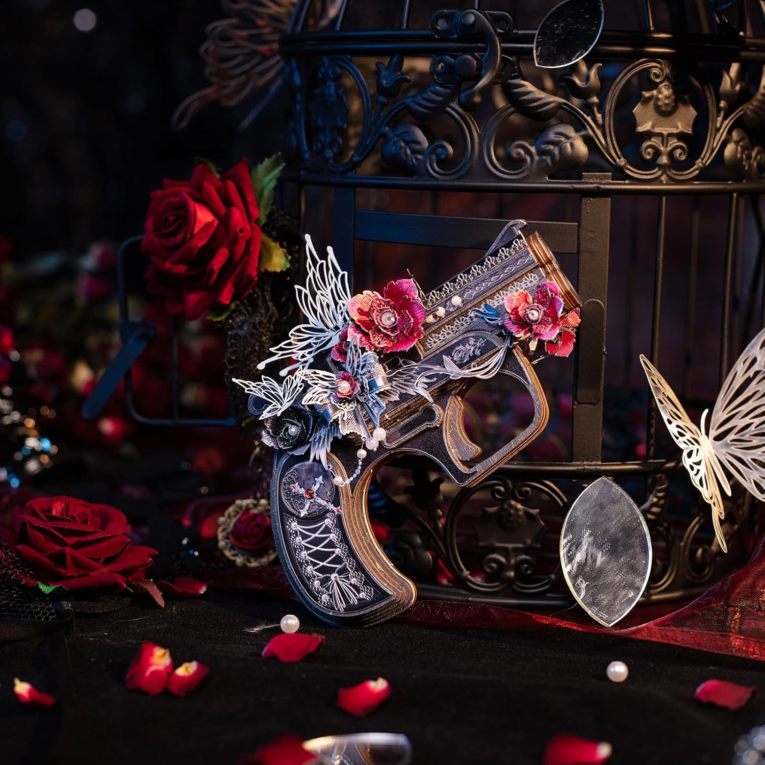 MU 3D Wooden Puzzle for Adult Derringer-Rose of The Night Defender Wood Gun Toy Building, AK47 Revolver Rubber Band Gun Pistol Toys 3D Metal Puzzles Model Kits, DIY Kits Hobbies Xmas Birthday Gift